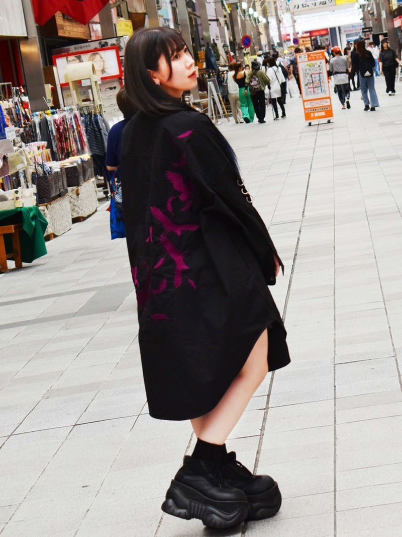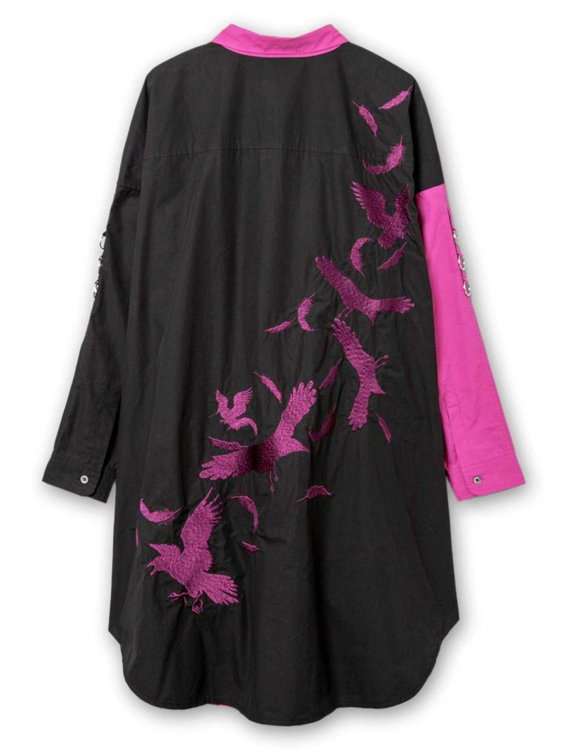 “カラス”総刺繍ロングシャツ