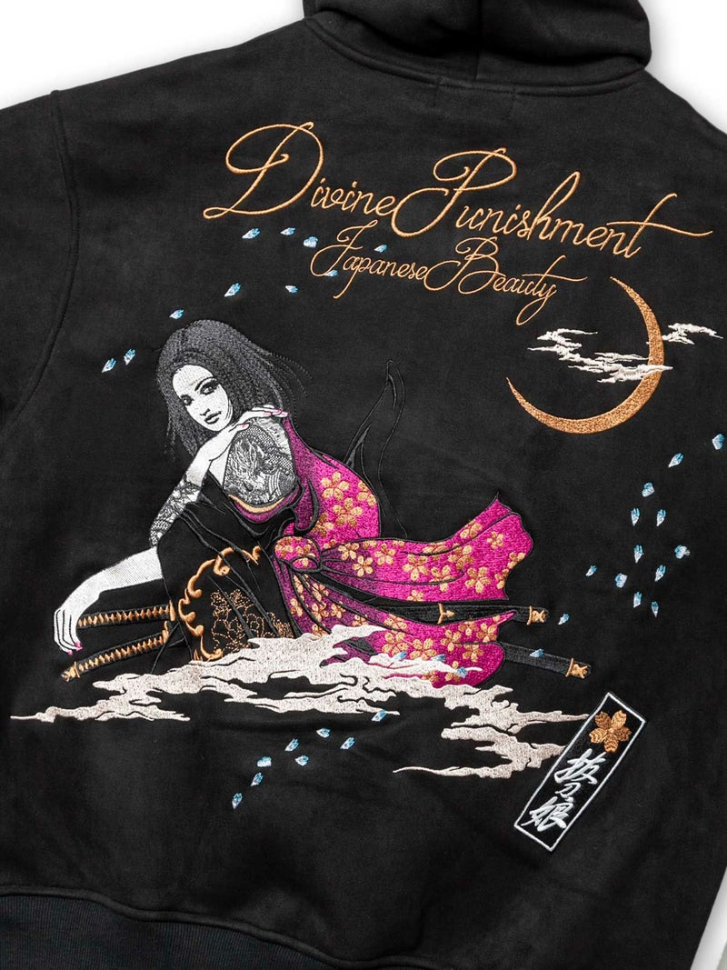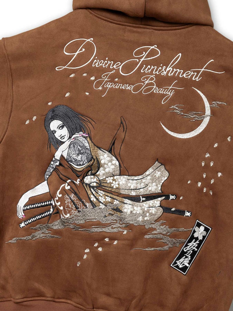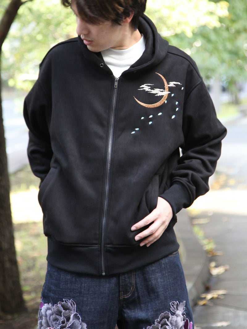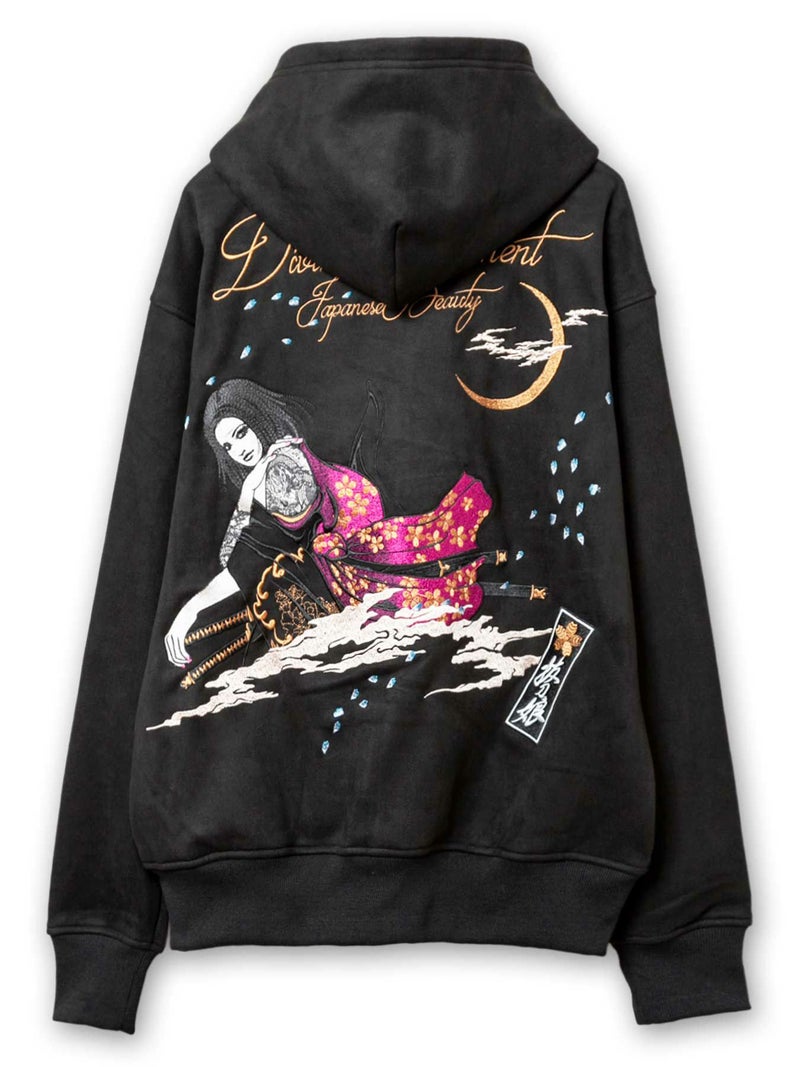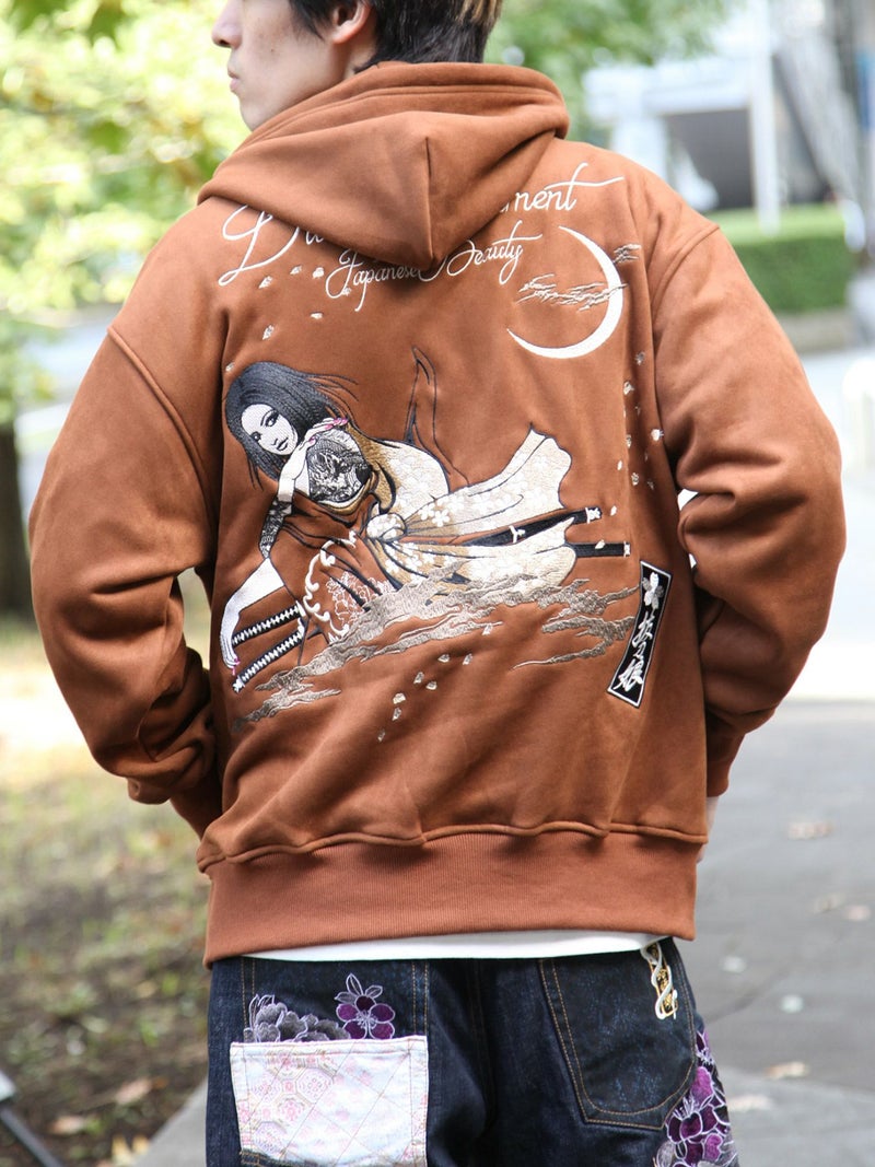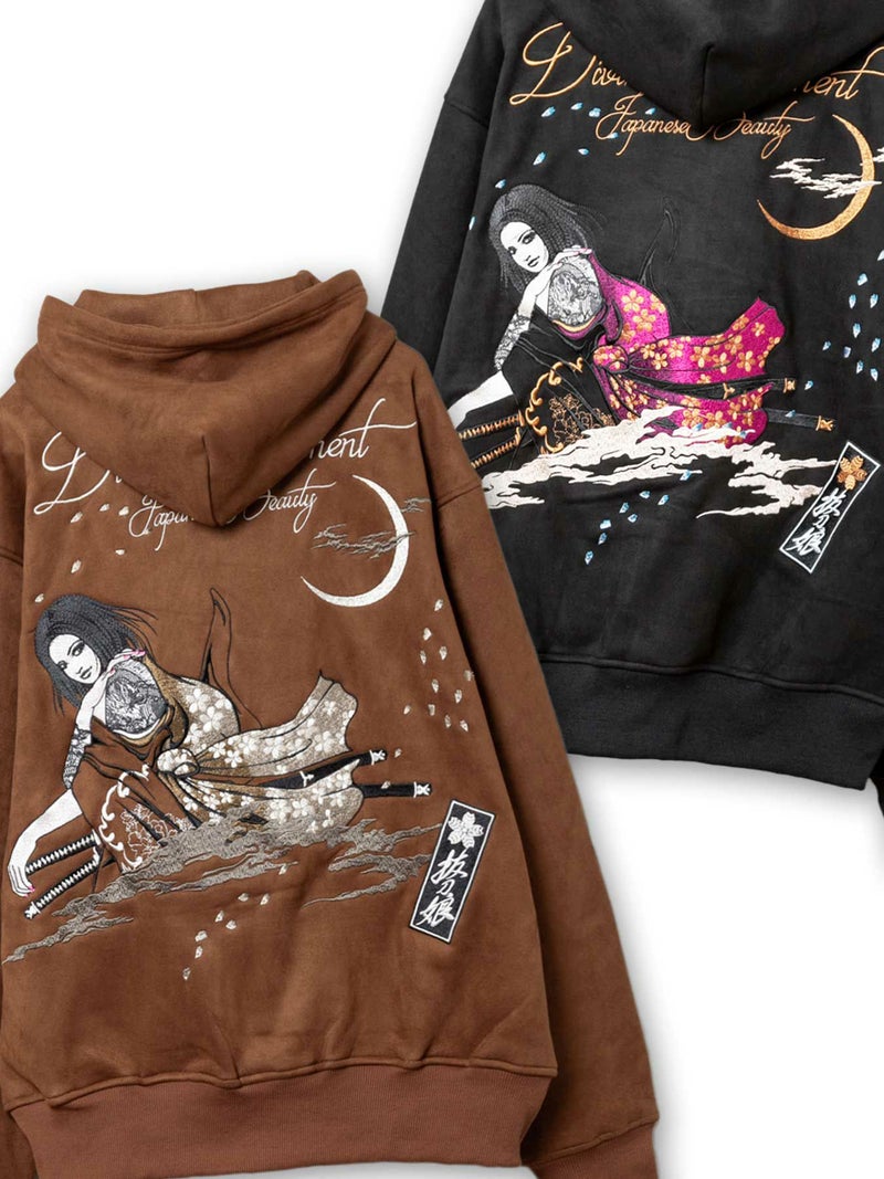 - 【抜刀娘】“闇の刺客:凛”総刺繍フェイクスウェードZIPパーカー