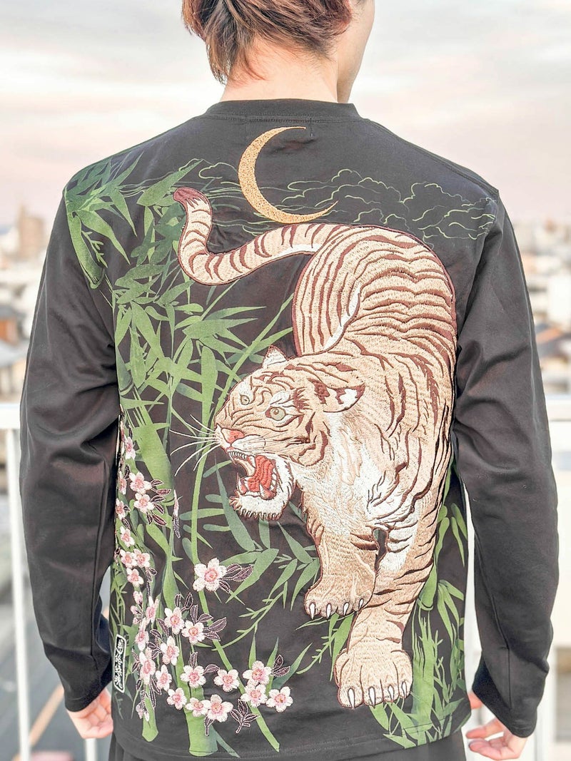 3. 【絡繰魂・粋】“白虎 竹桜”刺繍入りロンT
