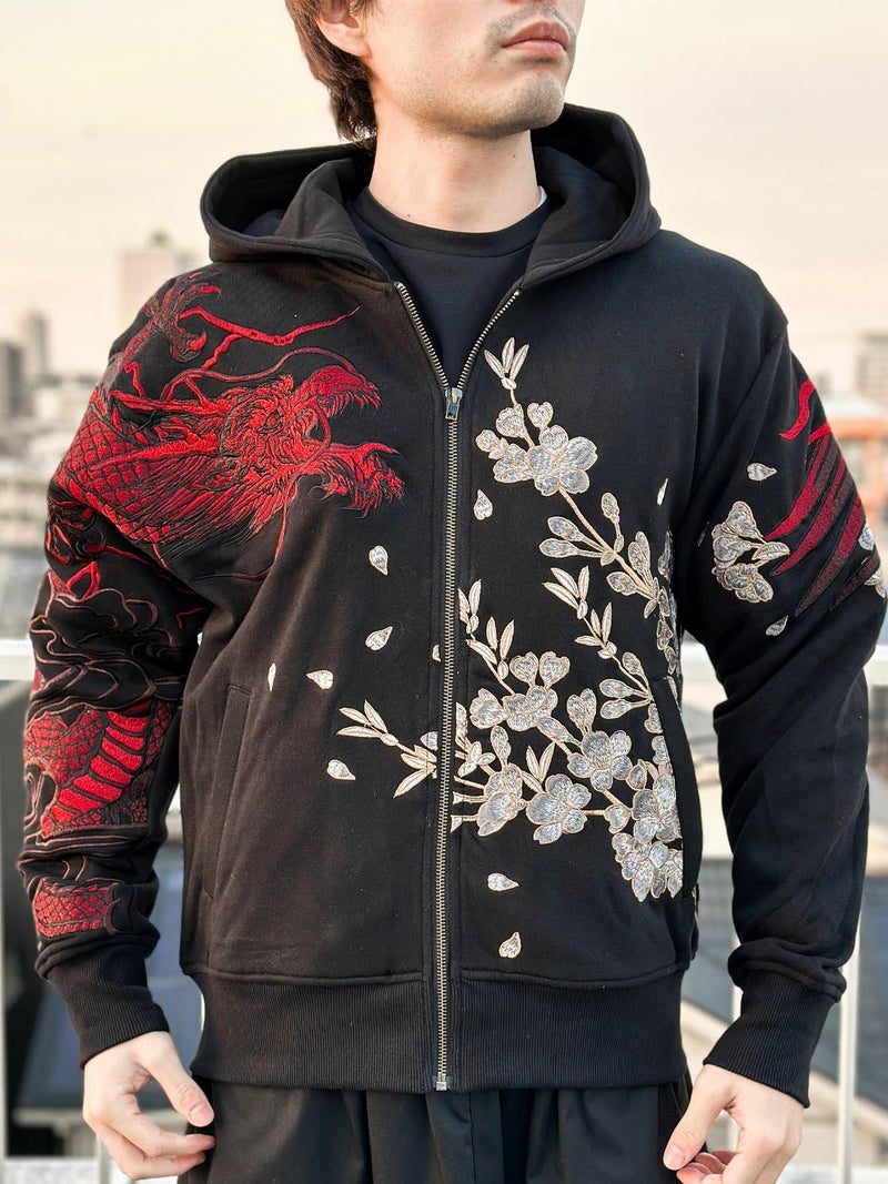 4. 【絡繰魂・頂】“双龍×鳳凰ノ頂”総刺繍ZIPパーカー