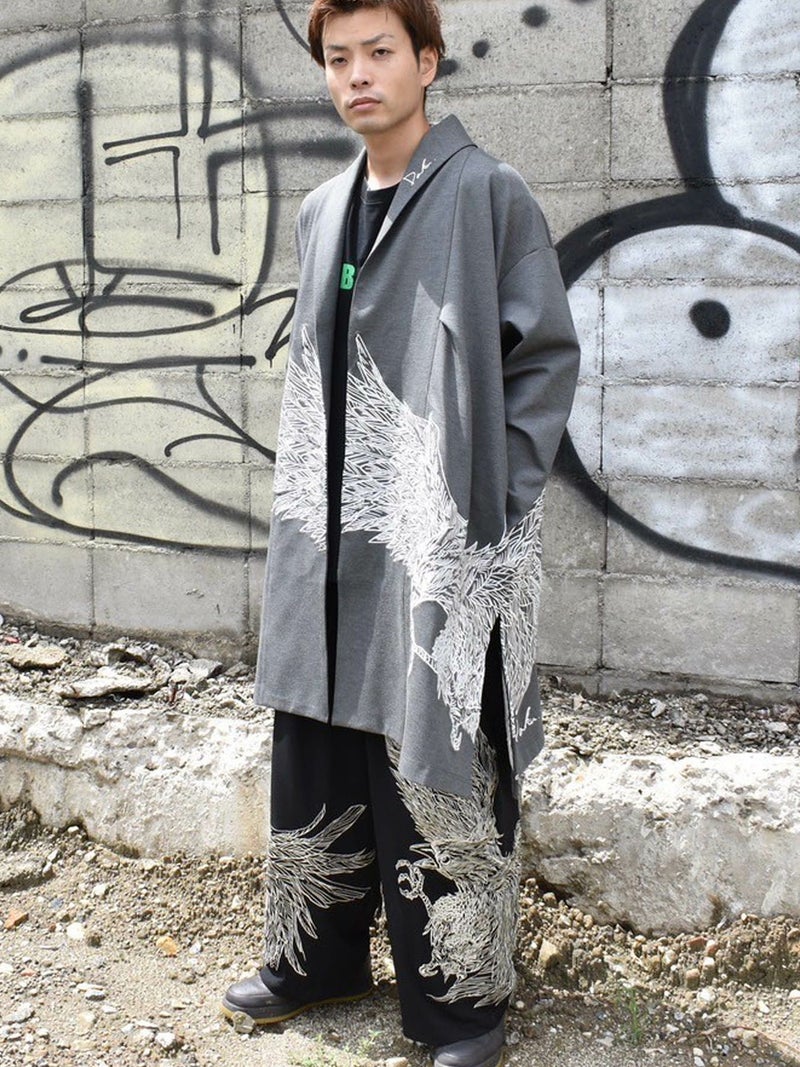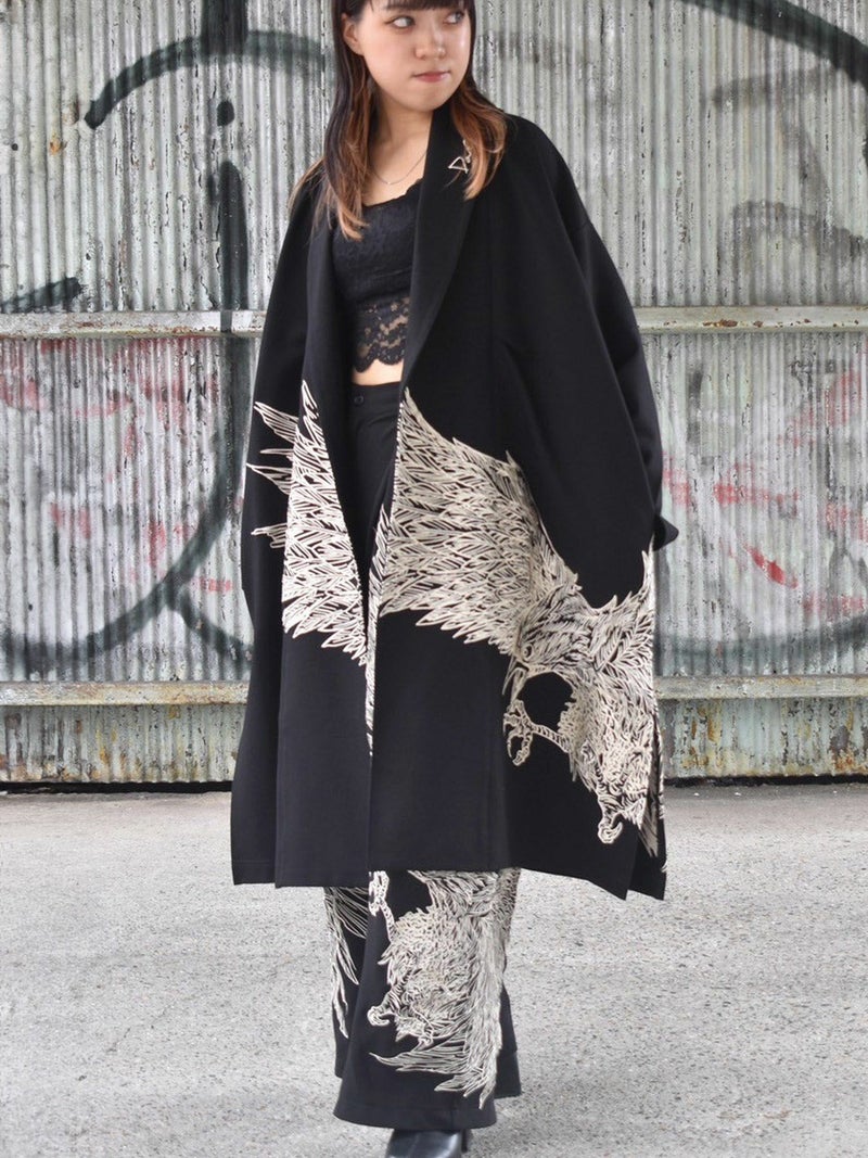 “カラス”総刺繍ポンチ素材BIGチェスターコート