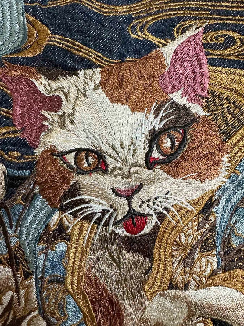 4. 【絡繰魂・粋】“猫又羽衣”総刺繍デニムパンツ
