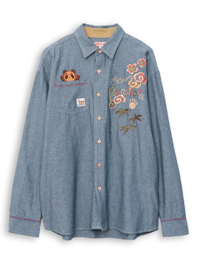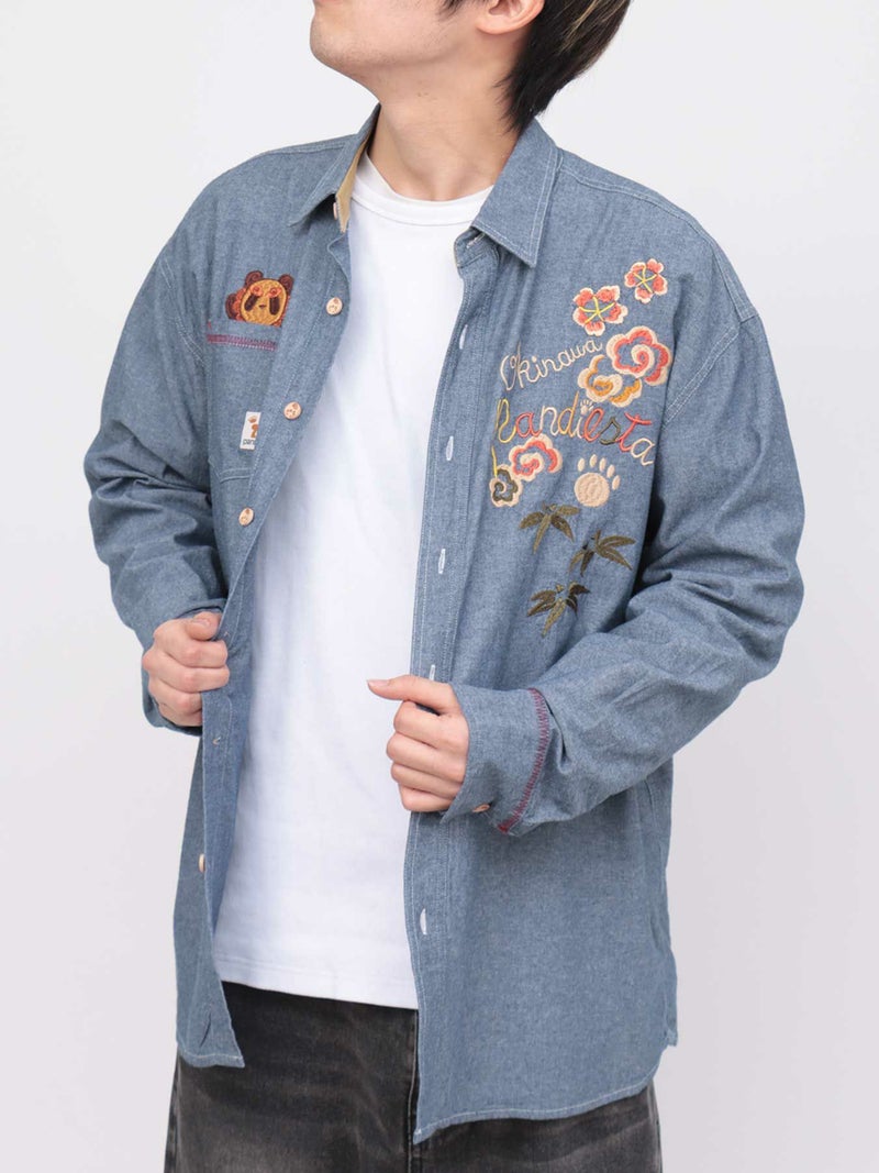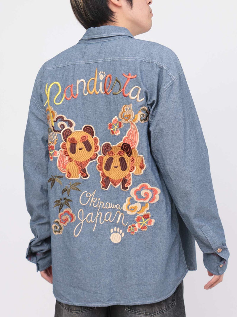 “シーサーパンダ”シャンブレー素材シャツ