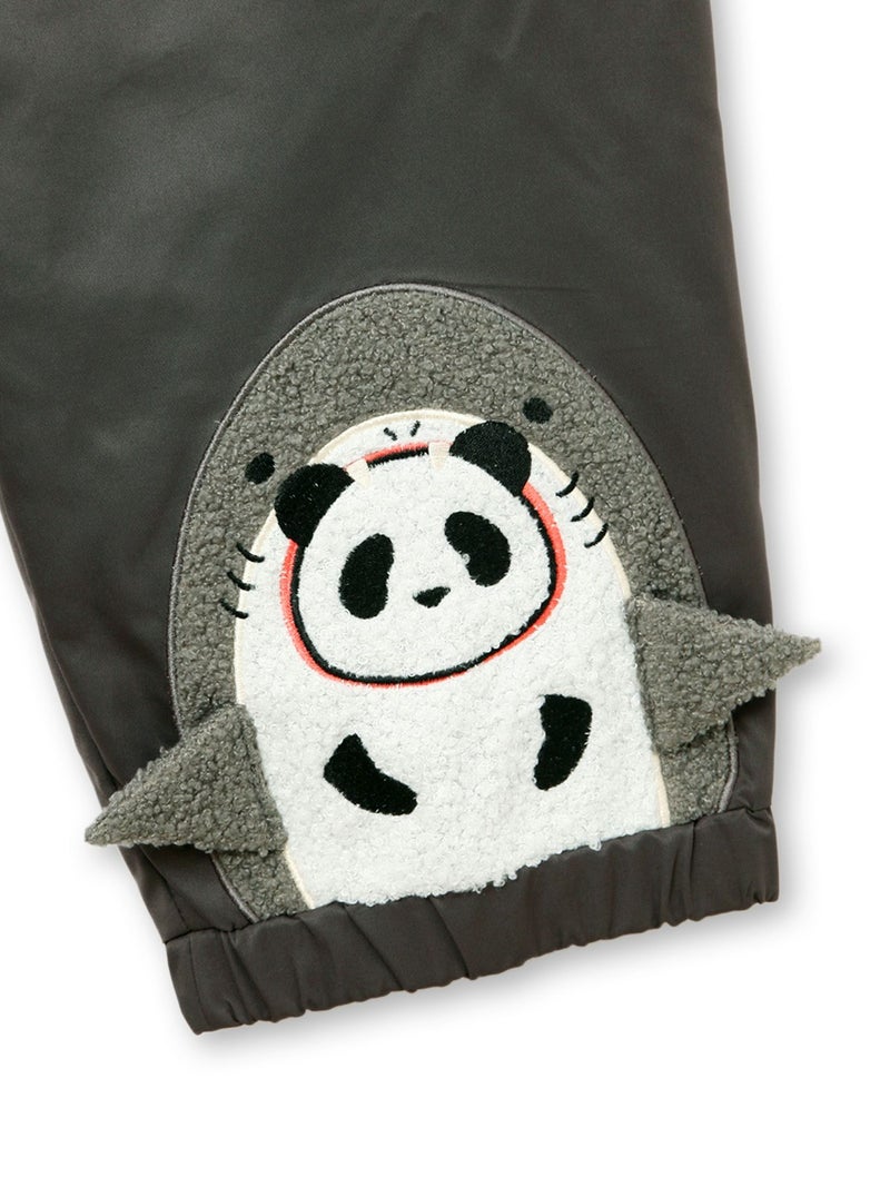 左脚の裾にはサメの着ぐるみを着込んだ可愛らしいサメパンダの姿が。