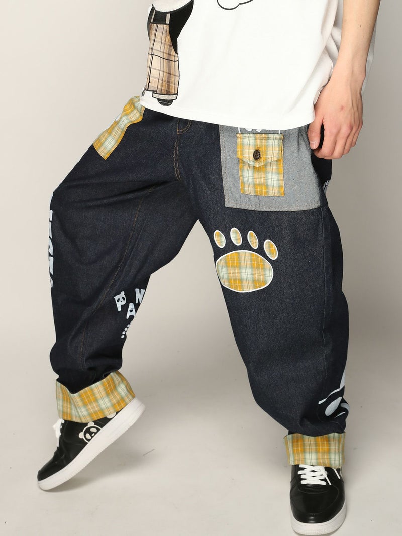 4. 【PANDIESTA JAPAN】チェック切替ワイドデニムパンツ〔別注〕