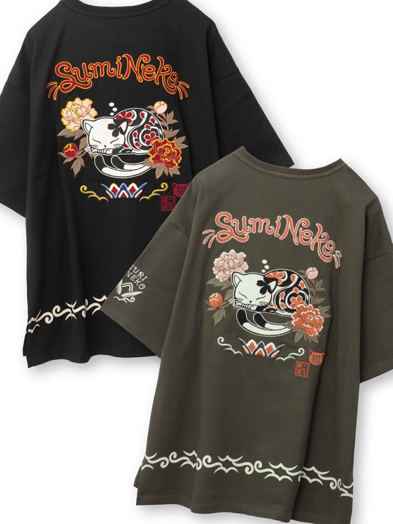 5. 【SUMINEKO】“眠り猫”刺繍入りBIGシルエットTシャツ