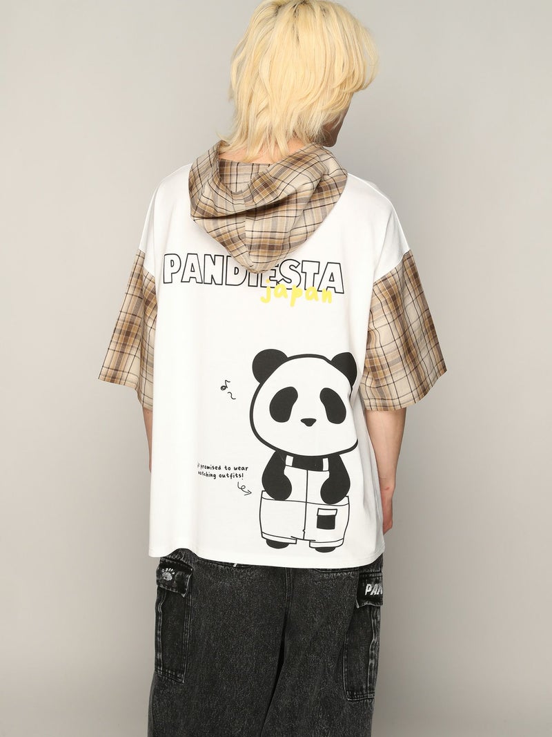 両袖とフード部分、ブランドロゴに切り替えられたチェック生地は、パンダが着ているオーバーオールとお揃いに♪