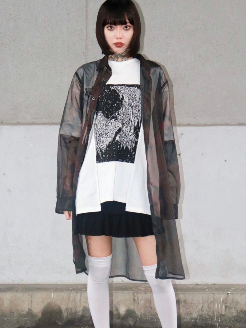 - ≪30%OFF≫【DAKU】カラスプリント 変形Tシャツ≪返品・取寄対応不可≫