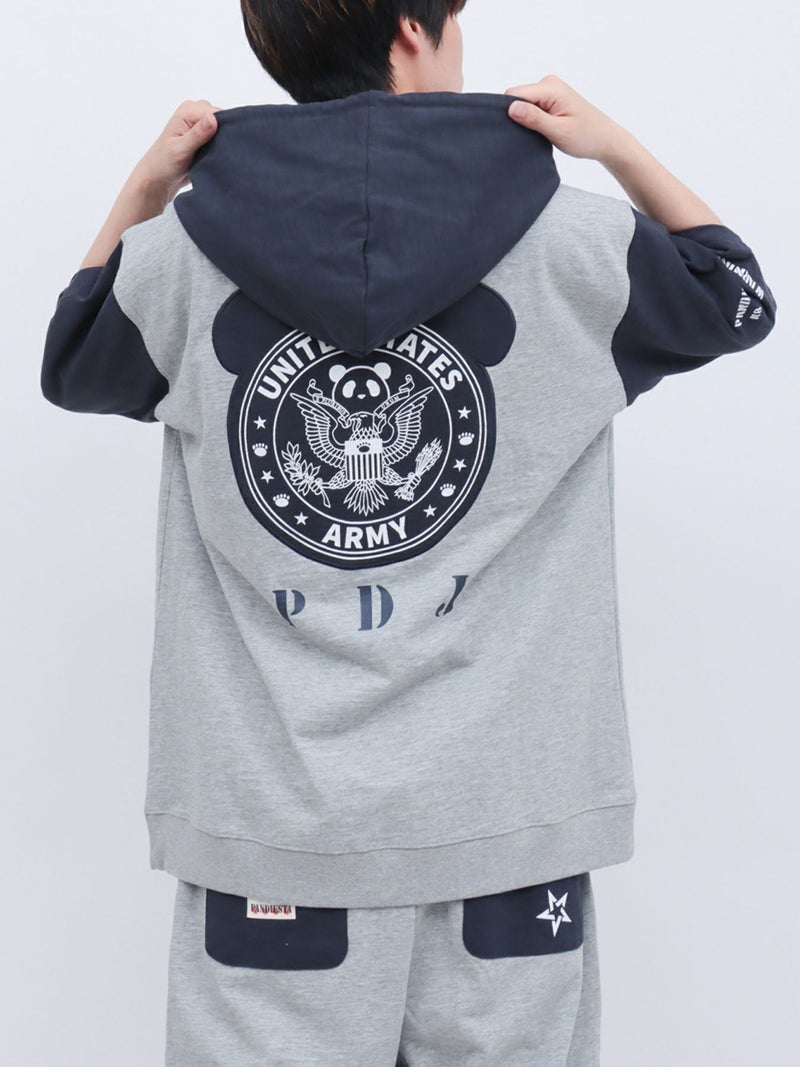 背面には、士官学校風のエンブレムを模した大きなパンダアップリケがドンッと配置されており存在感抜群!