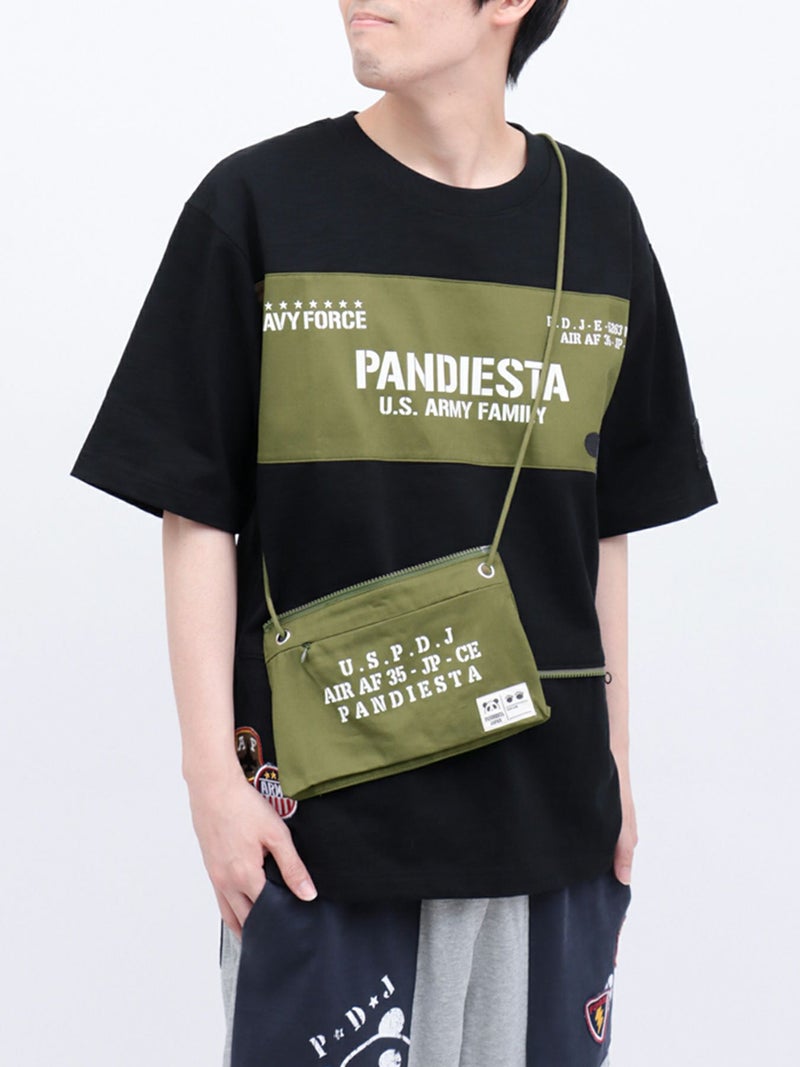 5. 【PANDIESTA JAPAN】サコッシュ風ポケット付き ツイル切替Tシャツ