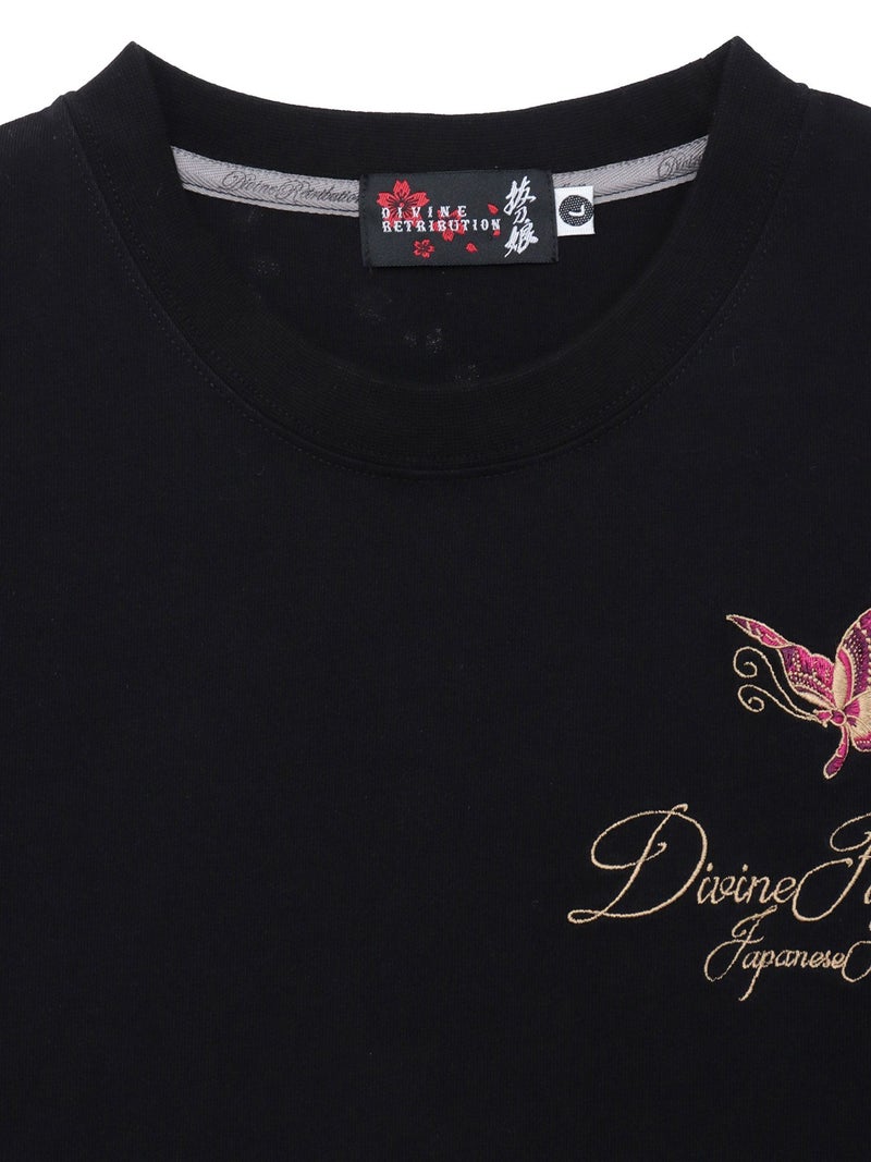 また前面には、胸元に「Durine Pumillhyment」のロゴと、一匹のバタフライが刺繍されており、シンプルながらも豪華なデザイン。