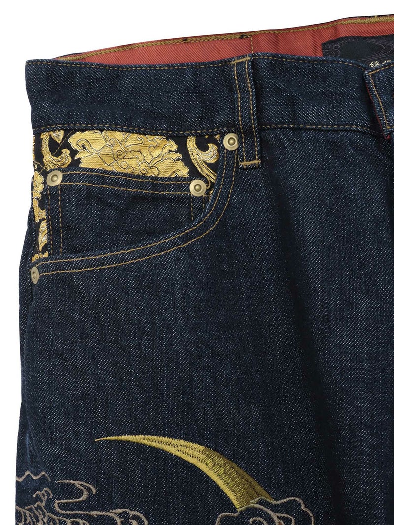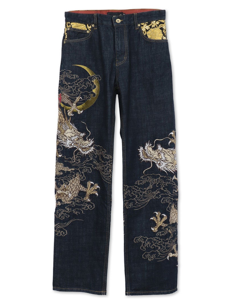 “月光双龍”総刺繍デニムパンツ