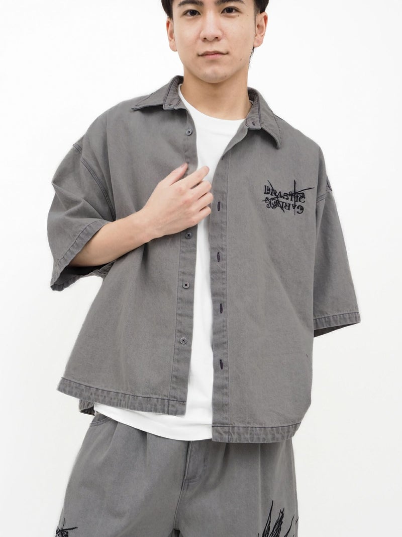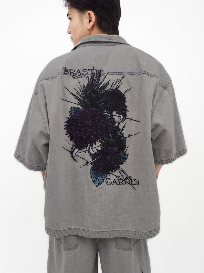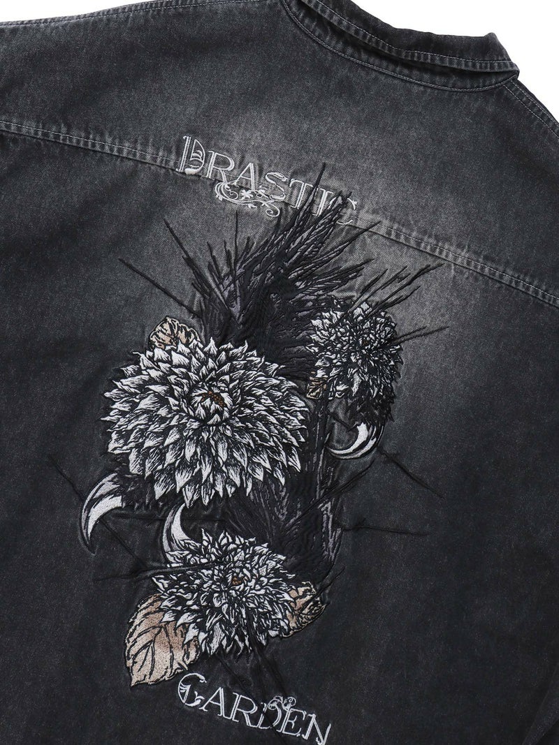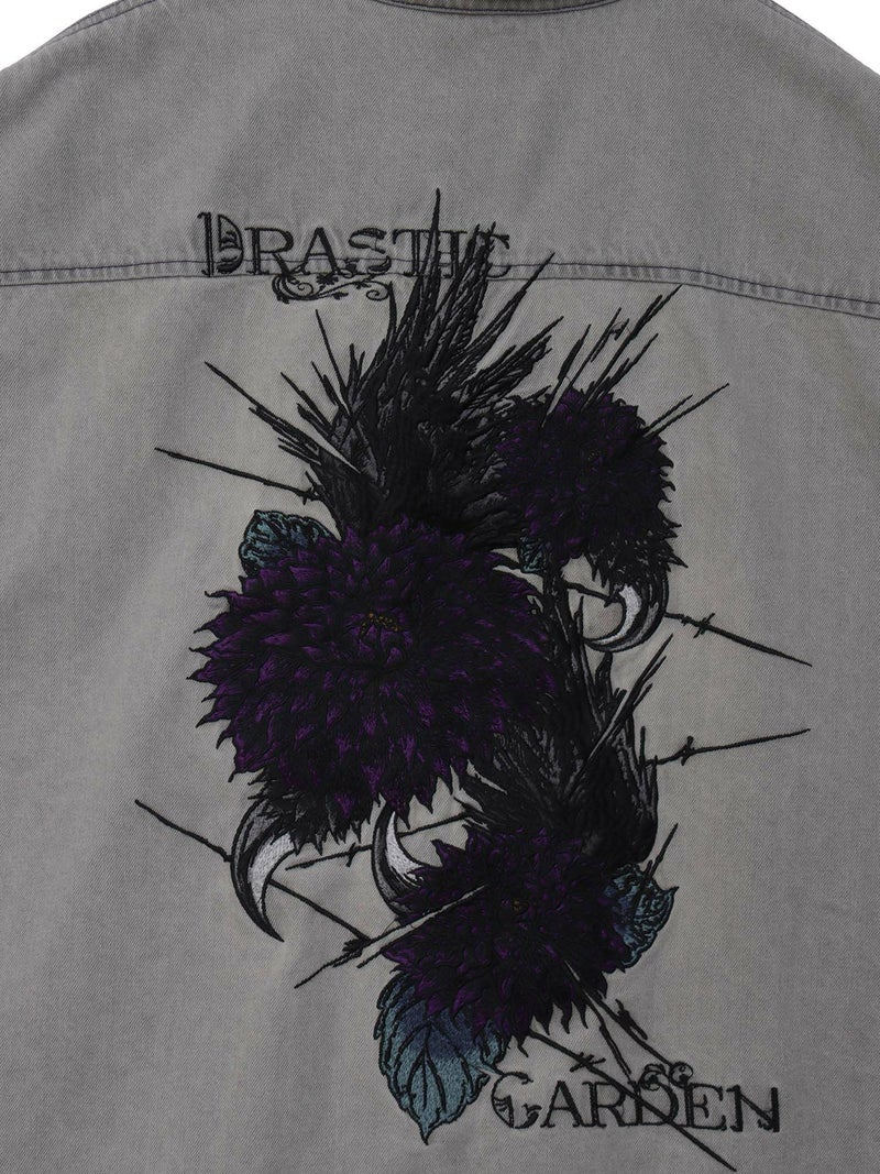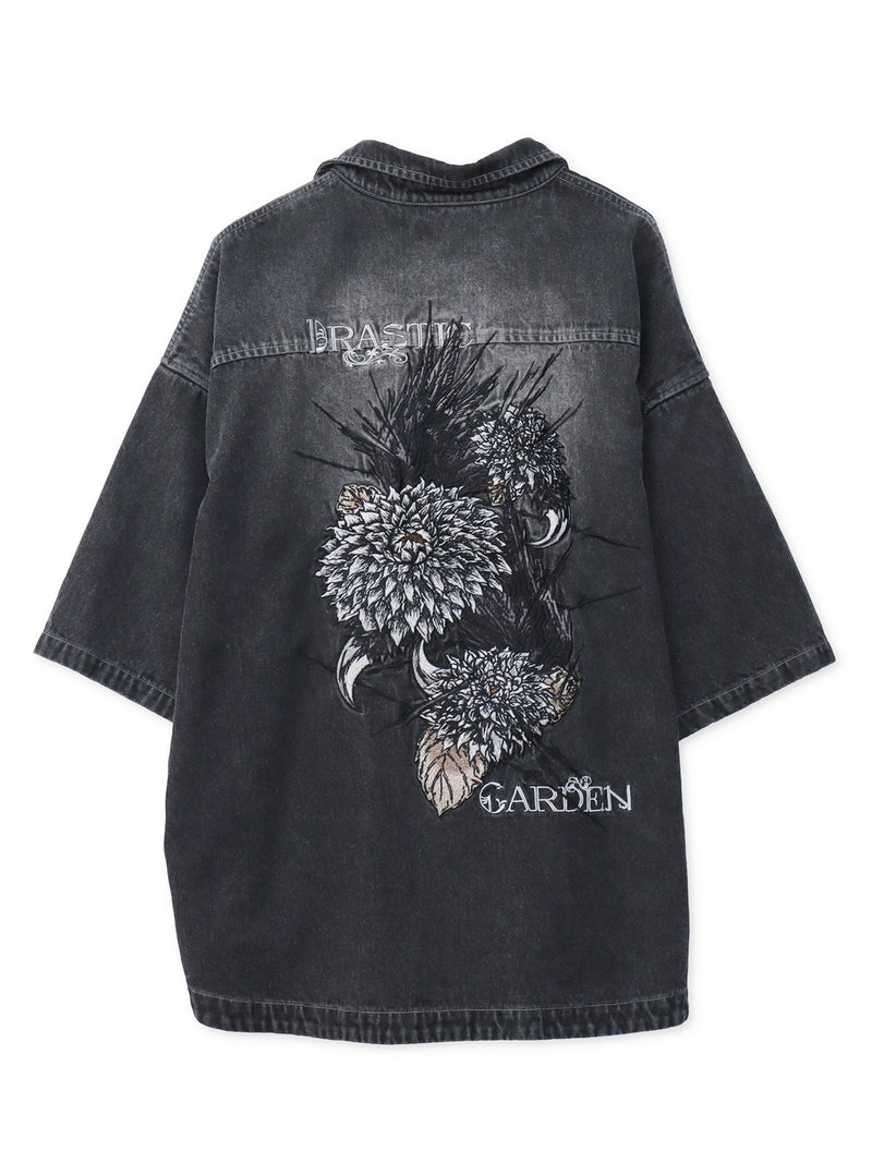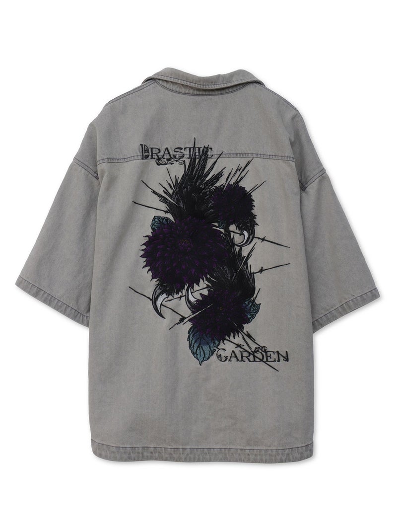 - ≪30%OFF≫【DRASTIC GARDEN】“フェザーダリア”総刺繍 半袖デニムシャツ≪返品・取寄対応不可≫