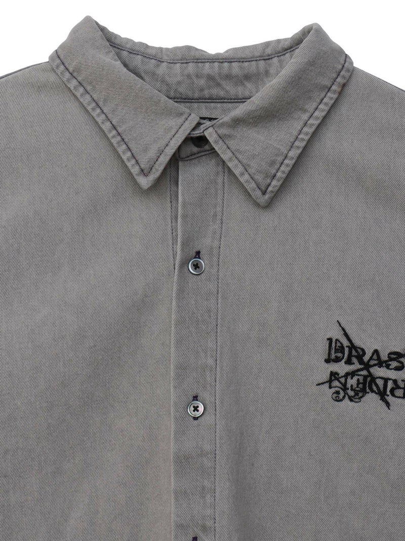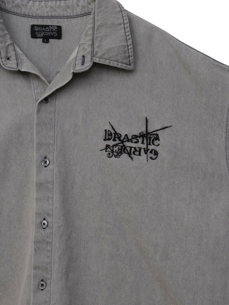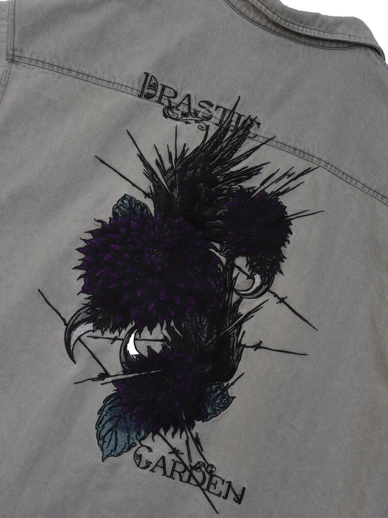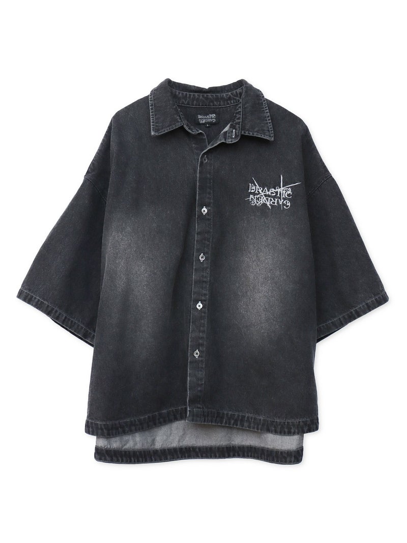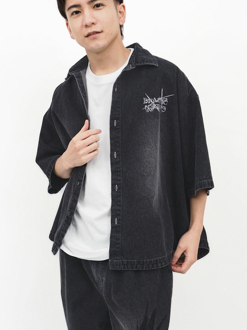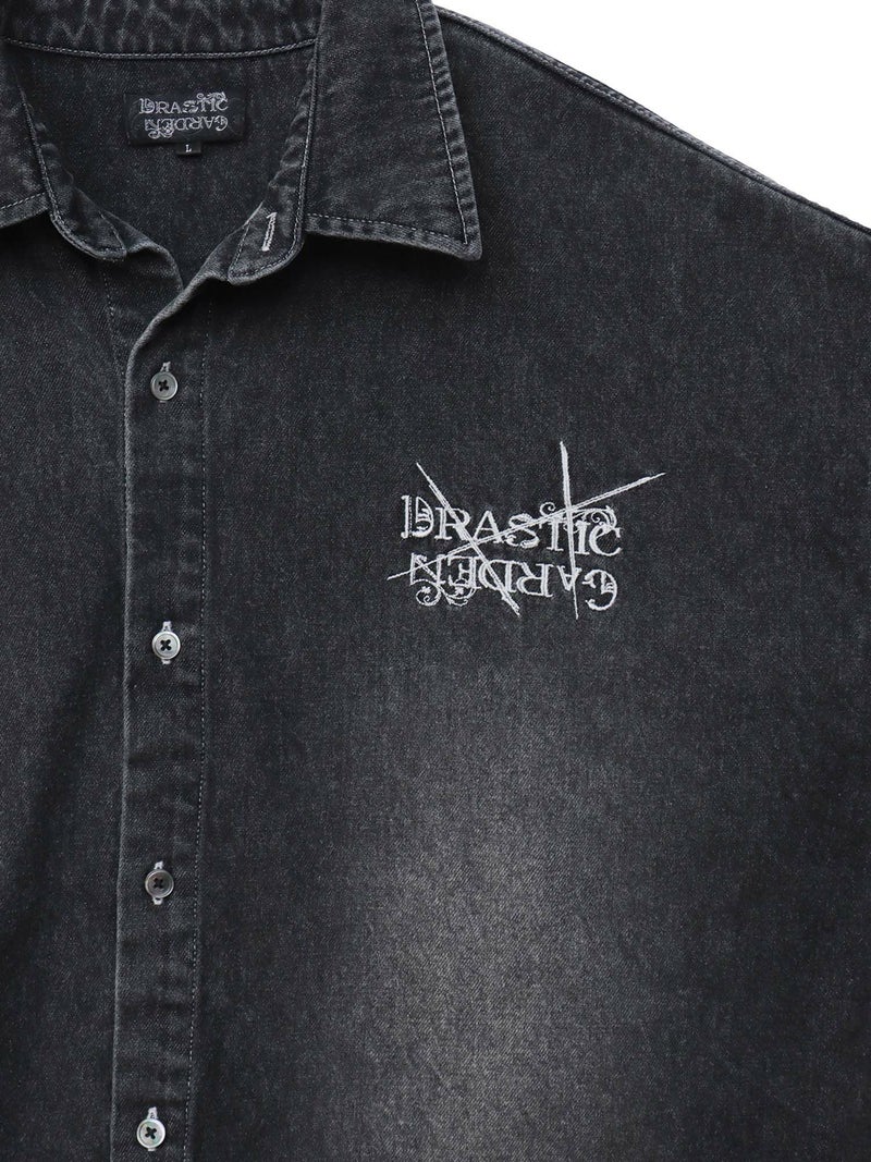 - ≪30%OFF≫【DRASTIC GARDEN】“フェザーダリア”総刺繍 半袖デニムシャツ≪返品・取寄対応不可≫