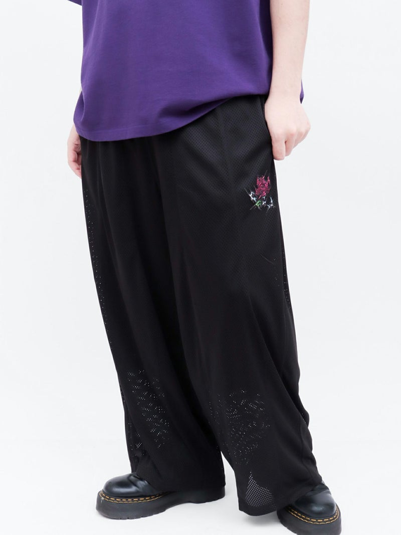 - ≪30%OFF≫【DRASTIC GARDEN】“稲妻の薔薇”総刺繍メッシュ素材ワイドパンツ≪返品・取寄対応不可≫