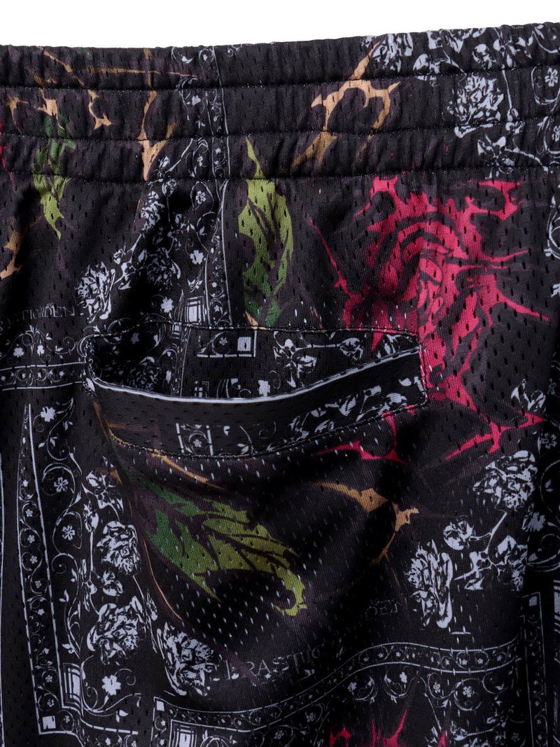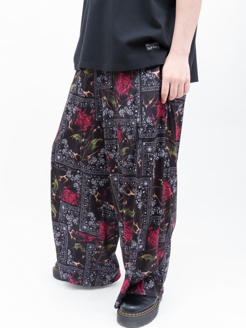 - ≪30%OFF≫【DRASTIC GARDEN】“稲妻の薔薇”メッシュ素材バンダナ総柄ワイドパンツ≪返品・取寄対応不可≫