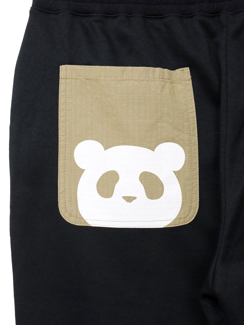 背面のポケットも別生地で配色切替されており、パンダフェイスのプリントやミリタリーテイストにアレンジされたピスネームを添えています。