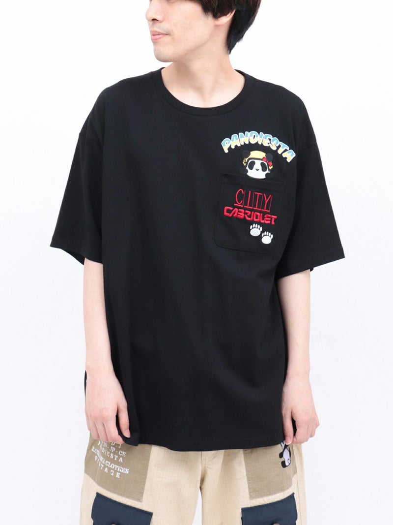 ポップなフォントとカラーリングでデザインされたブランドロゴや、パンダの雲など【PANDIESTA JAPAN】らしい遊び心が盛りだくさんの一着。