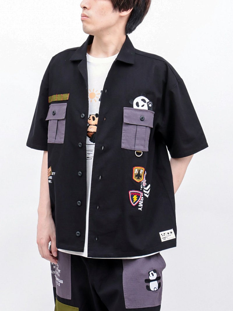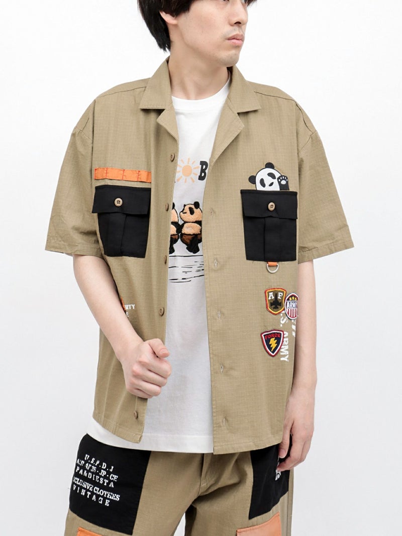 - 【PANDIESTA JAPAN】ナイロン切替 半袖ミリタリーシャツ