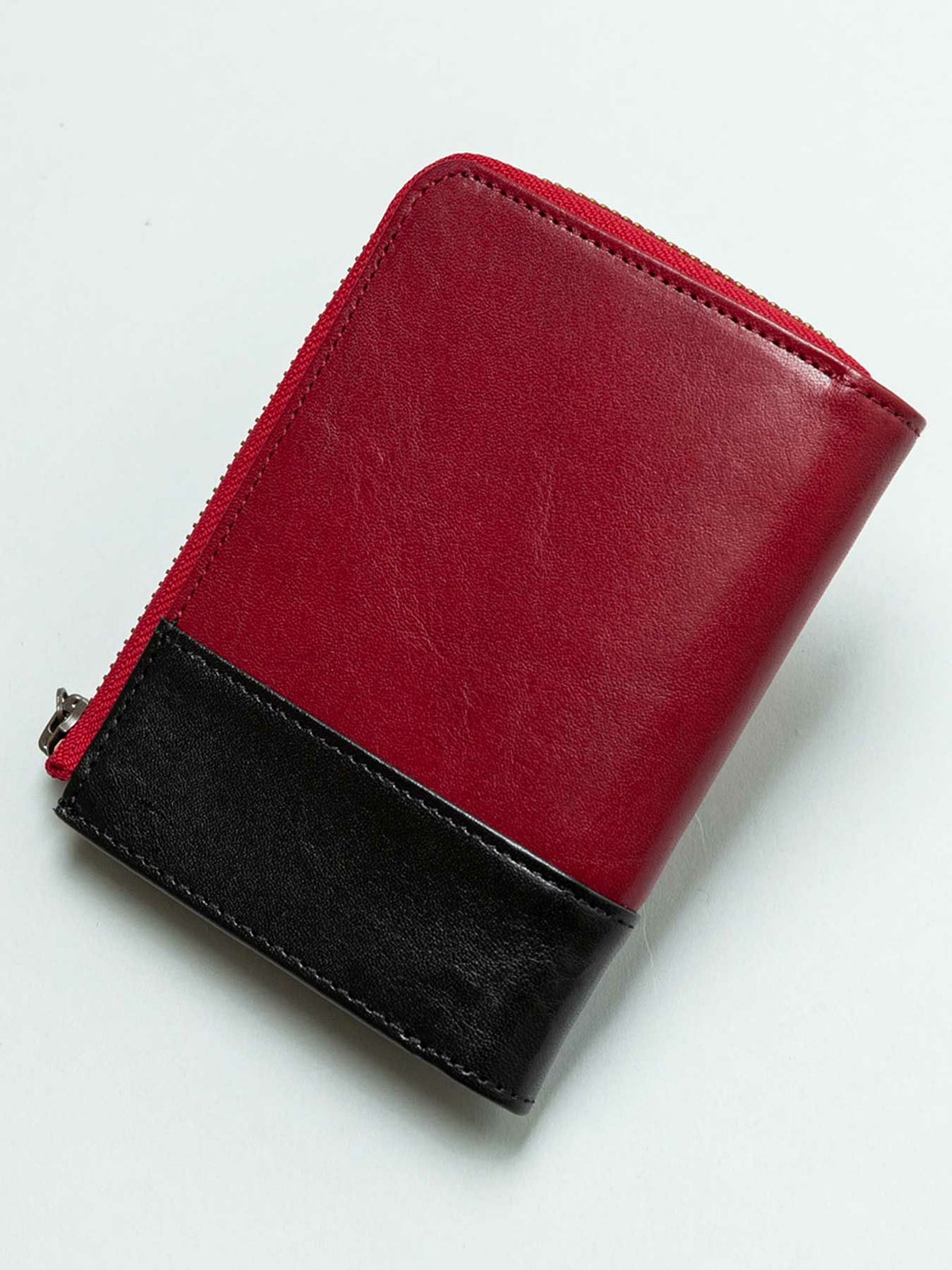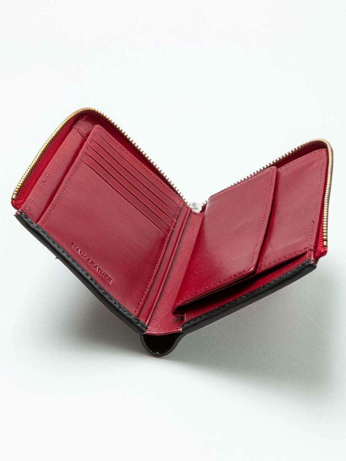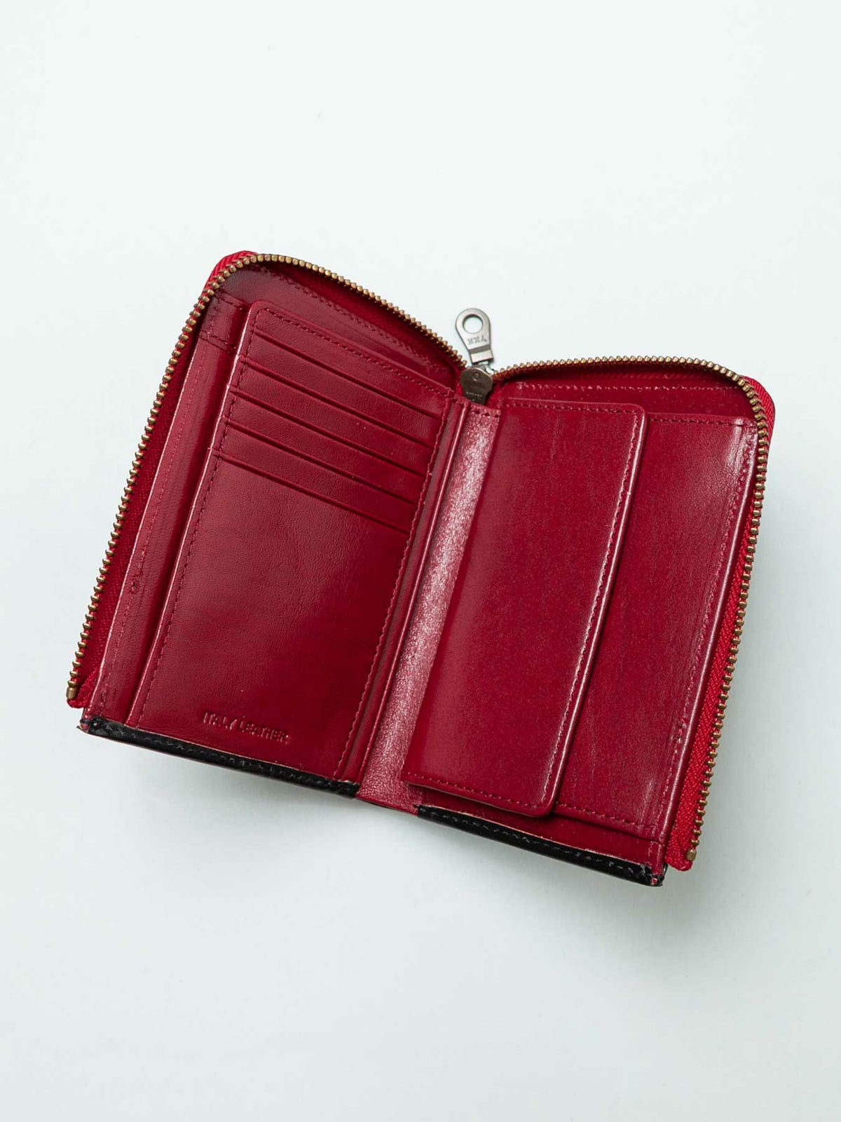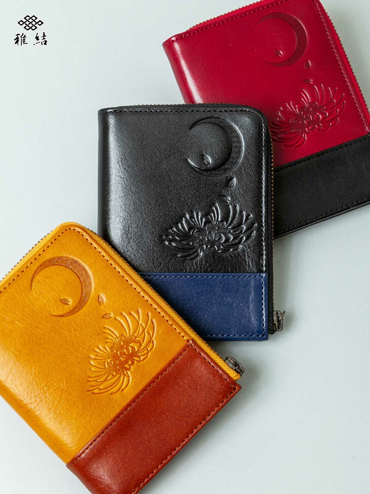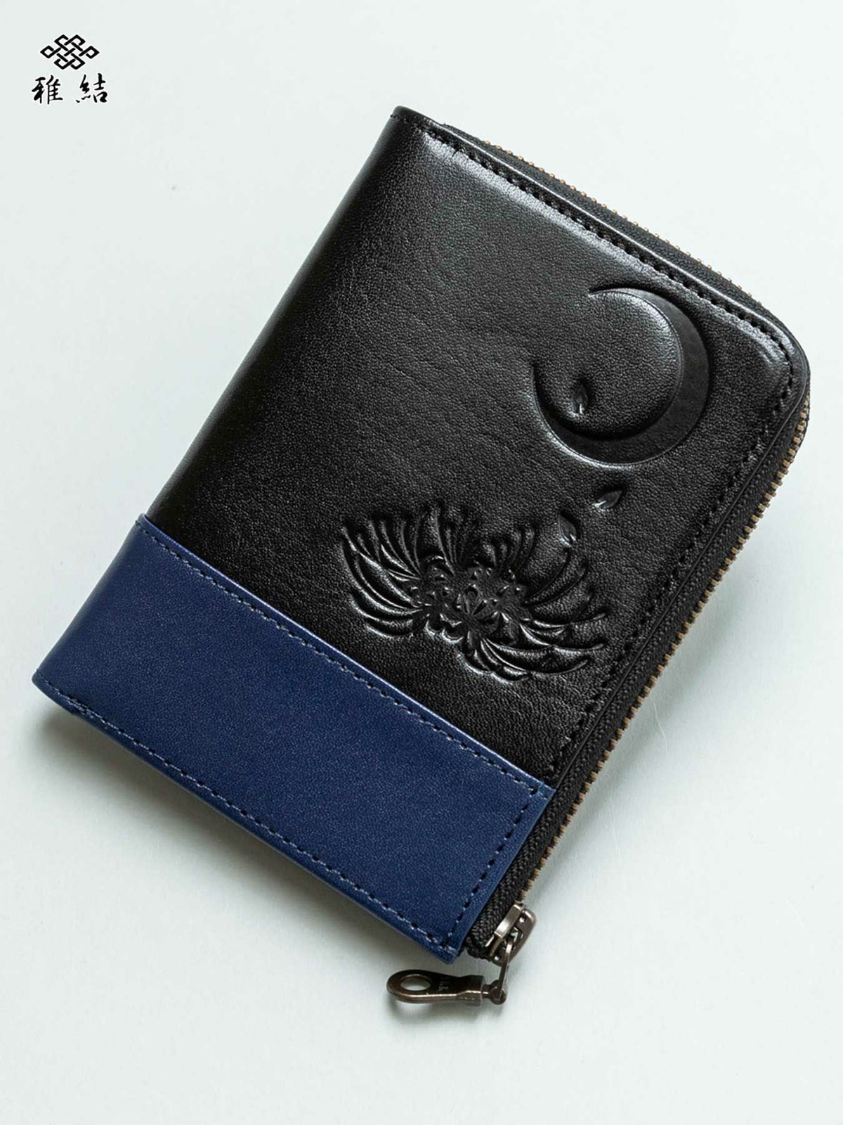 月夜に彼岸花エンボス加工イタリアンレザー2つ折りZIPウォレット≪返品・取寄対応不可≫