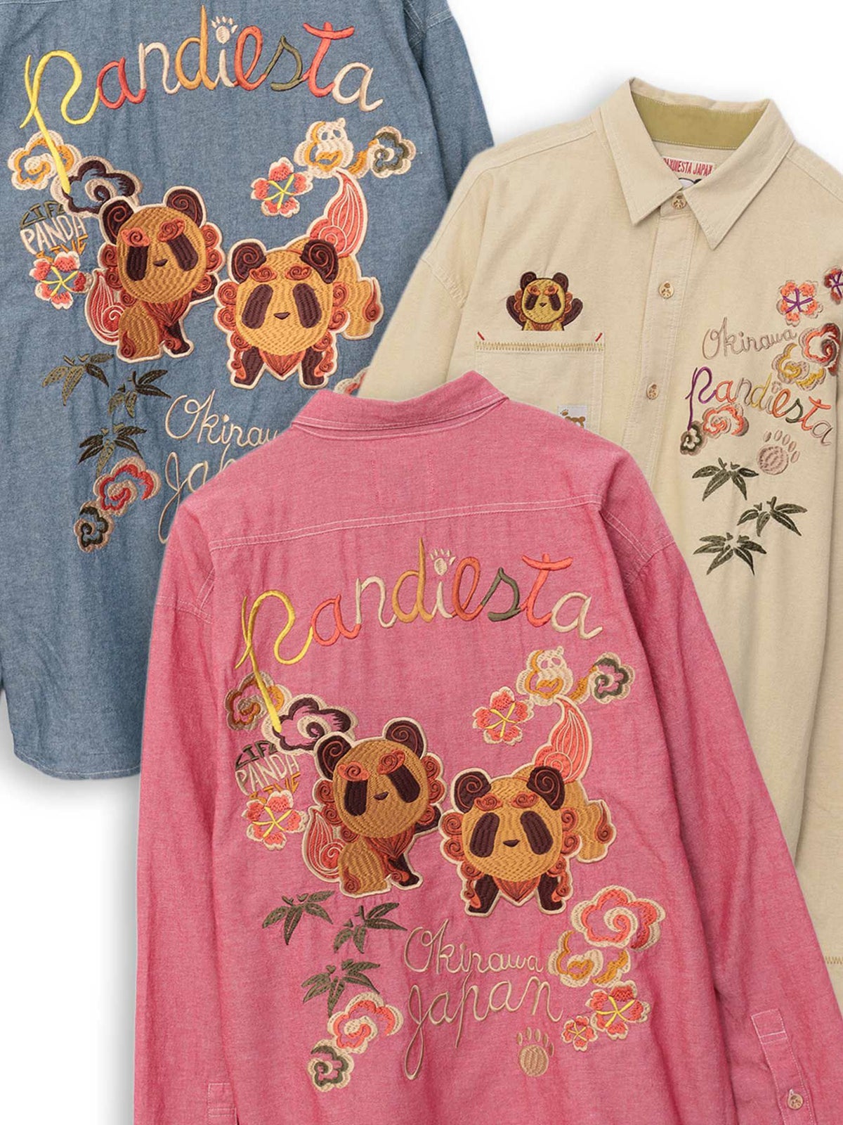 “シーサーパンダ”シャンブレー素材シャツ