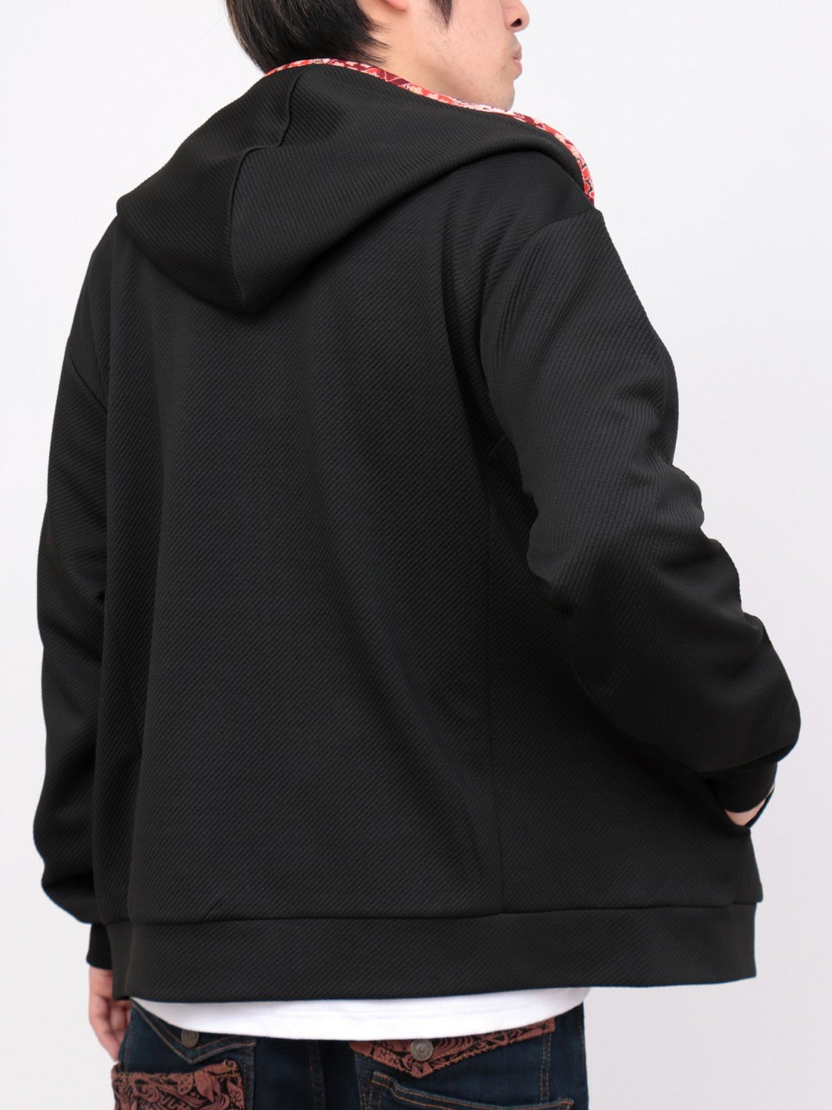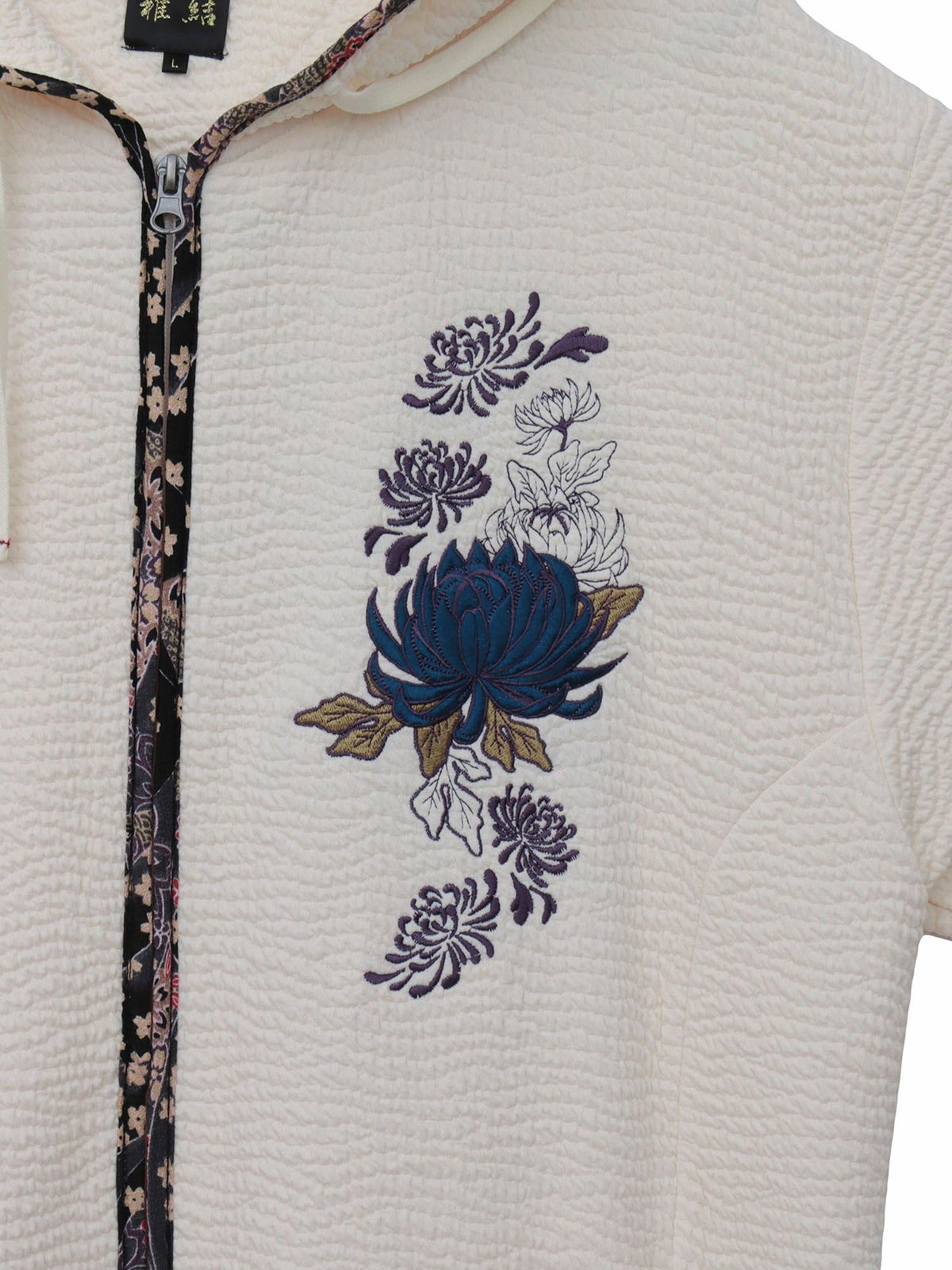 桜刺繍ふくれジャガード素材 和生地遣いZIPパーカー≪返品・取寄対応不可≫
