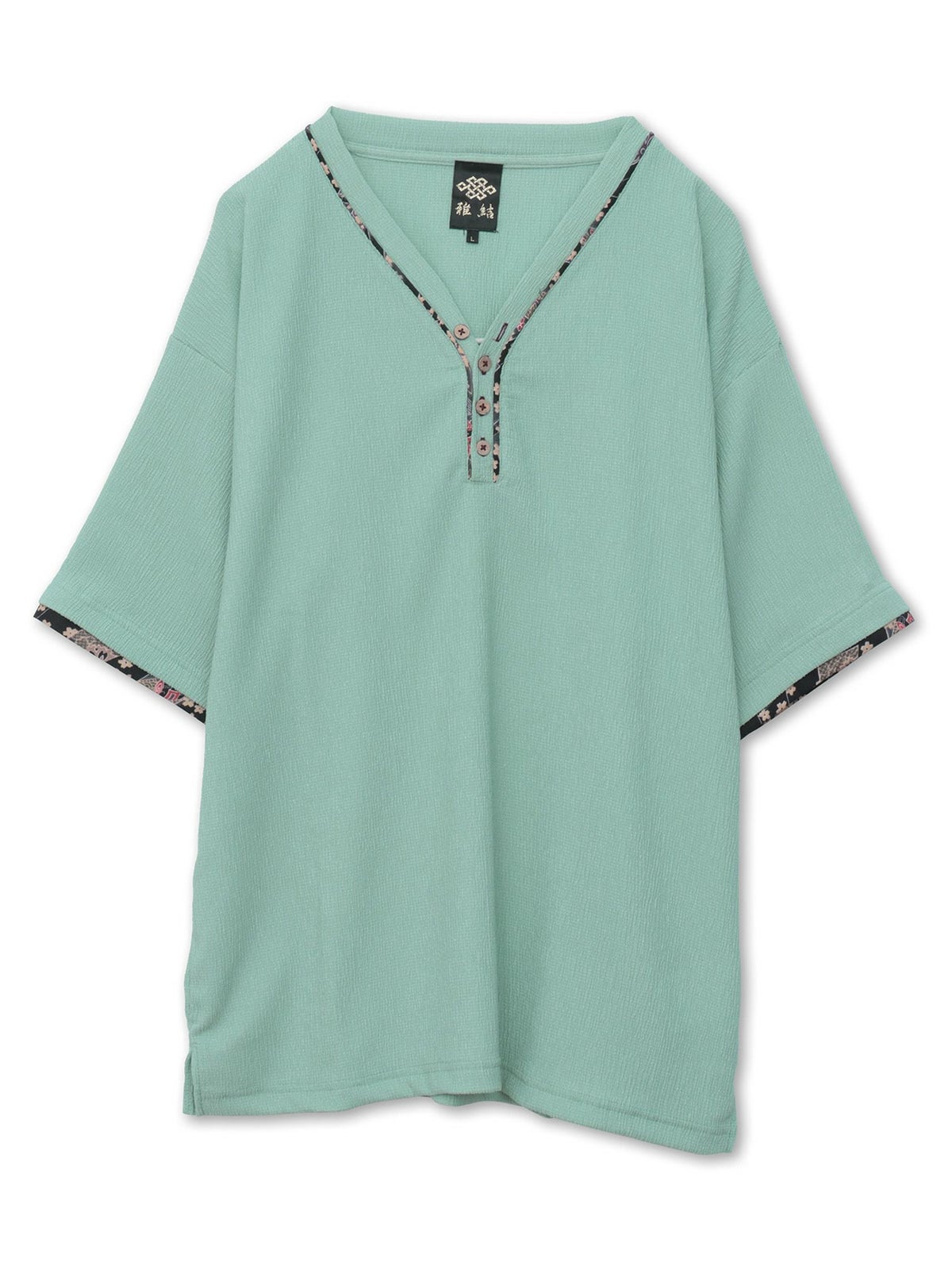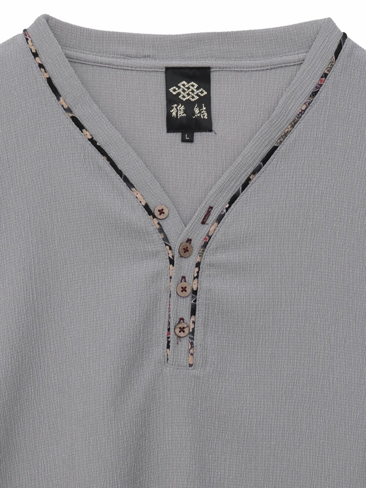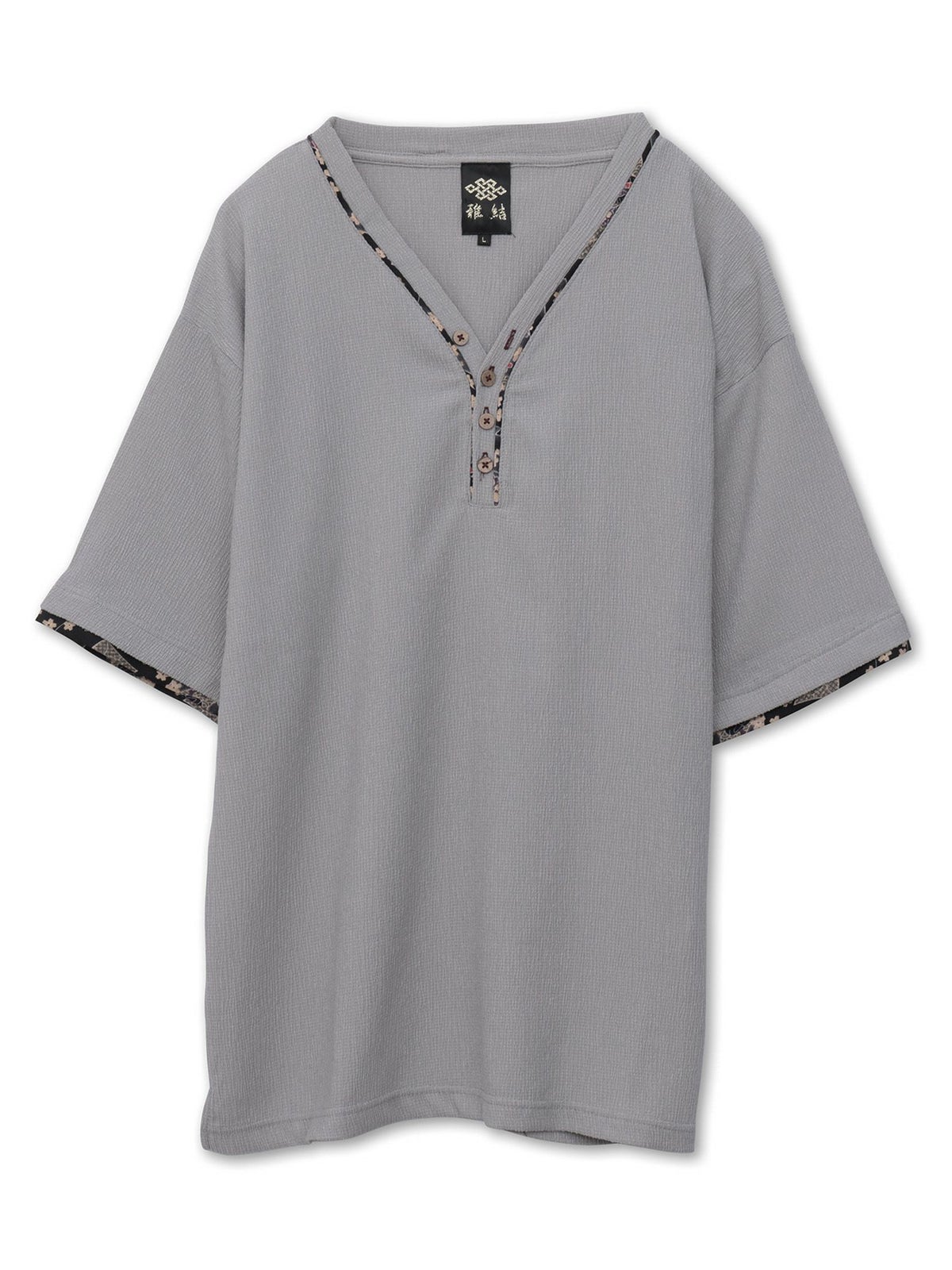和生地遣いY字ヘンリーネックTシャツ