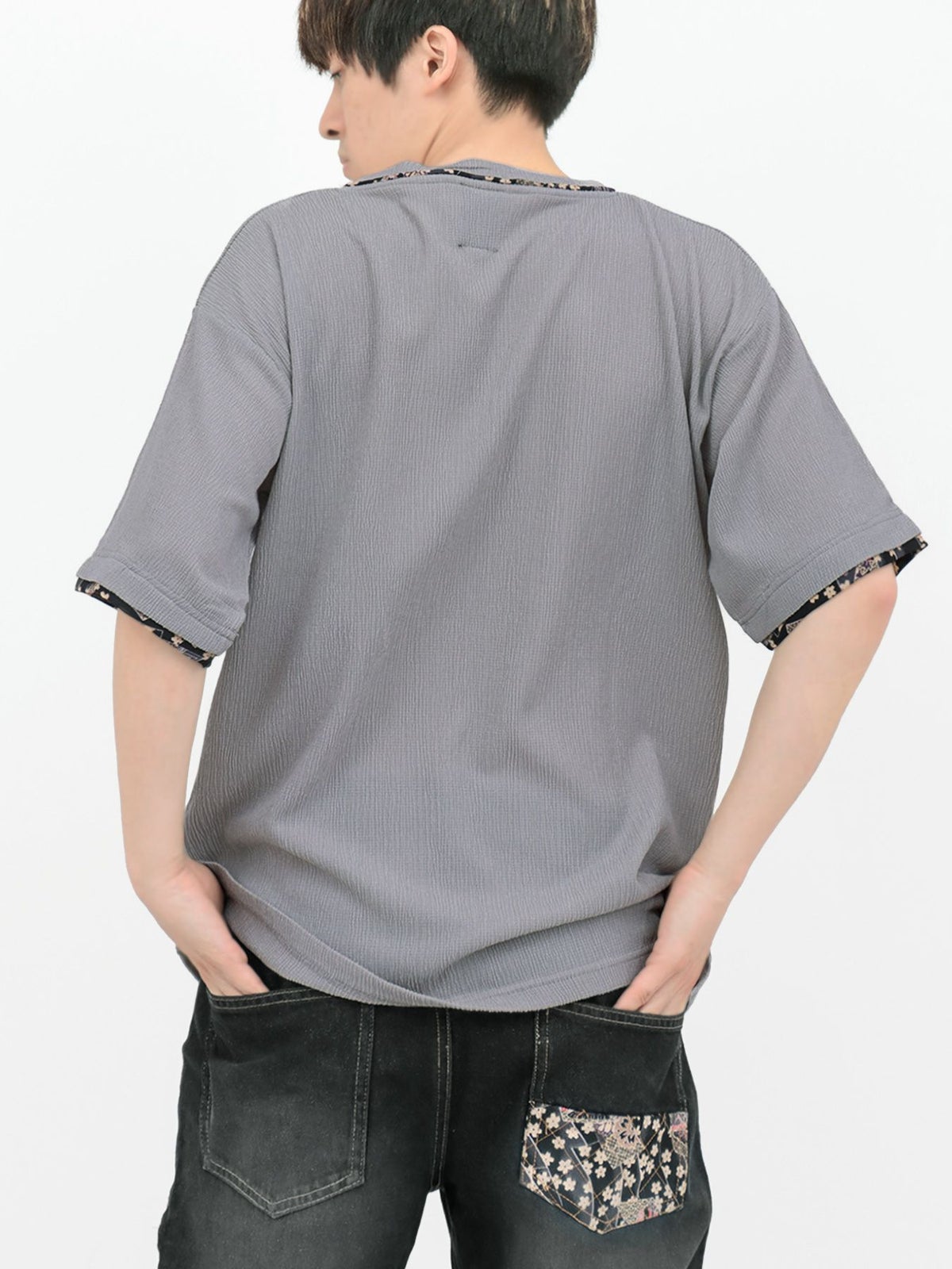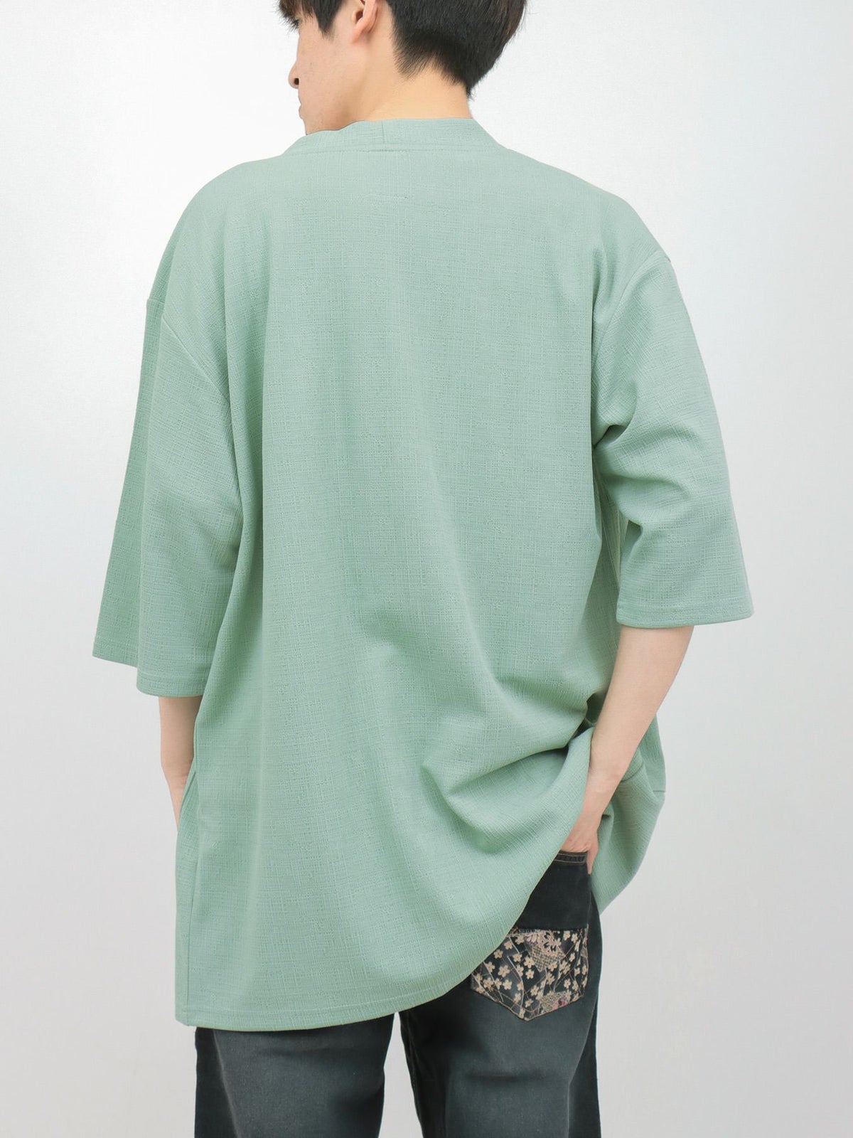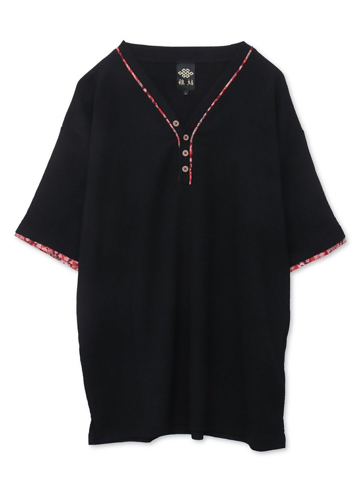 和生地遣いY字ヘンリーネックTシャツ