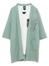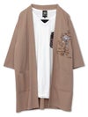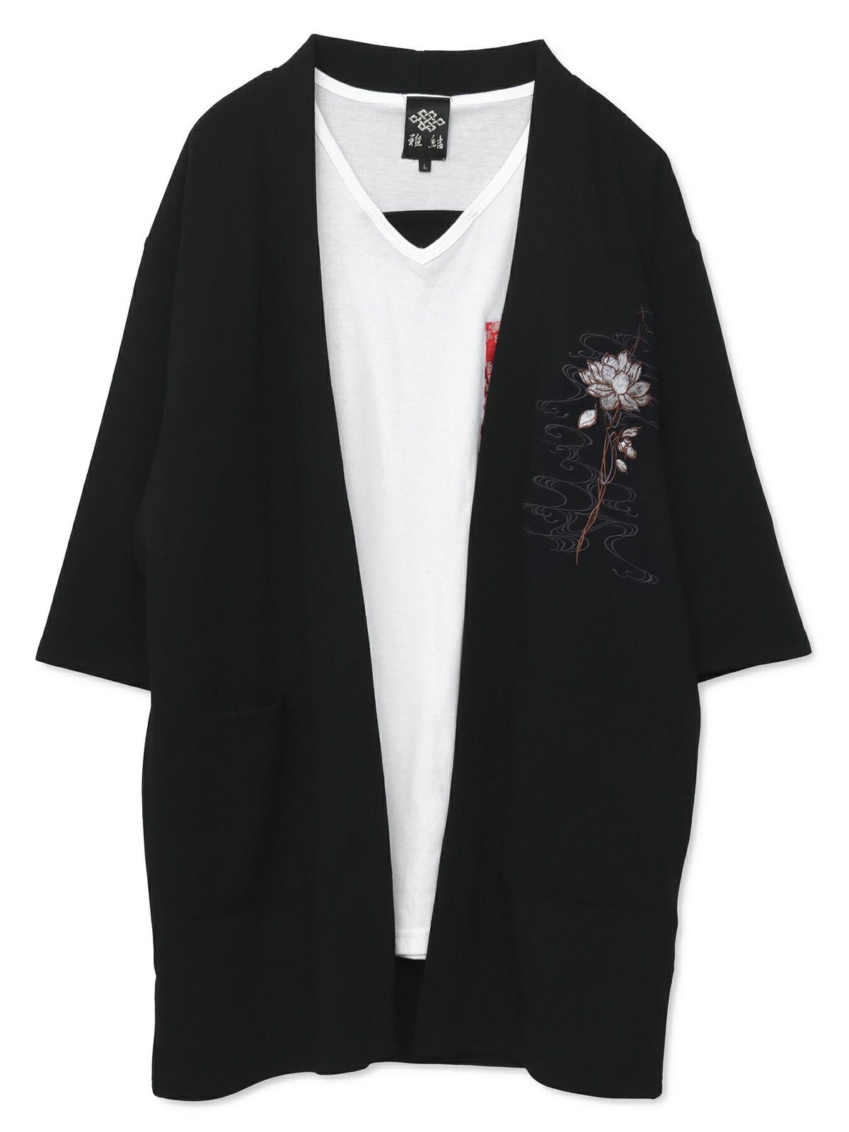 蓮流水刺繍 6分袖カーディガン×ポケットTシャツ アンサンブル≪返品・取寄対応不可≫