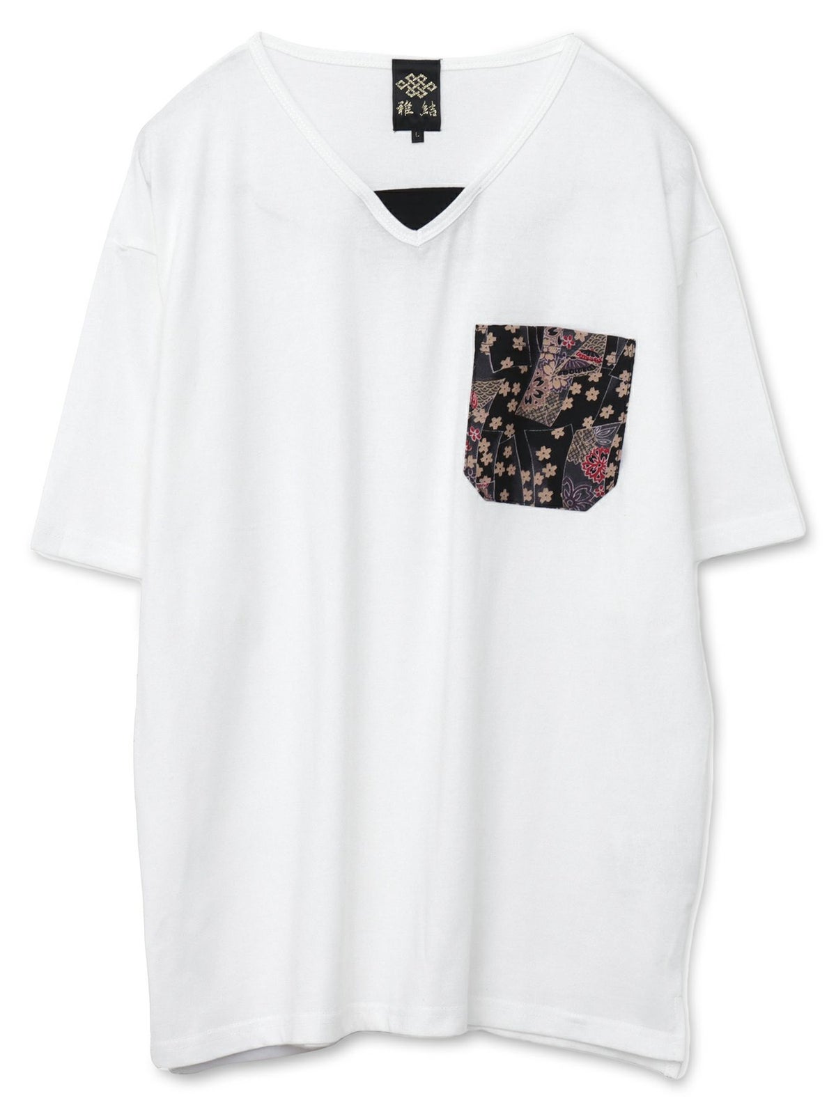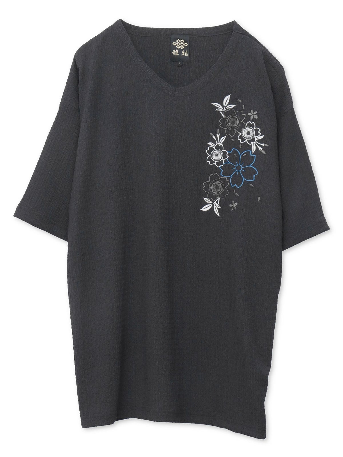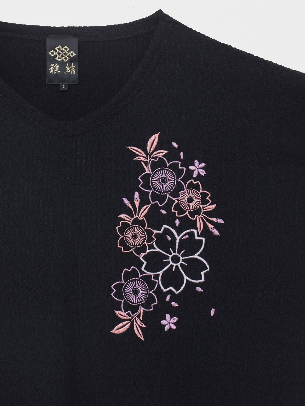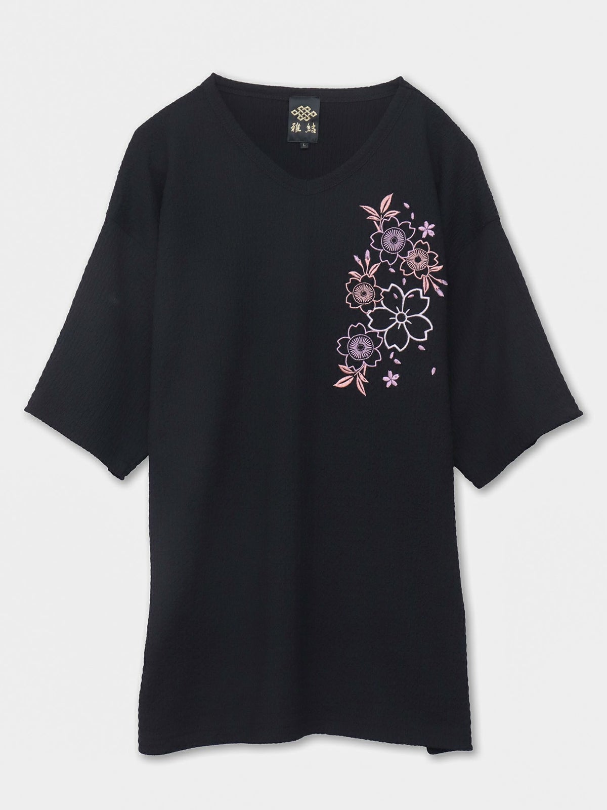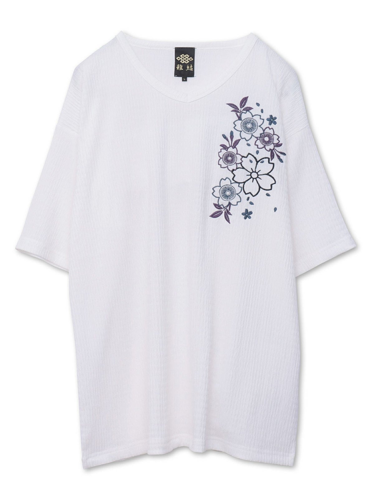 桜刺繍 楊柳生地VネックTシャツ