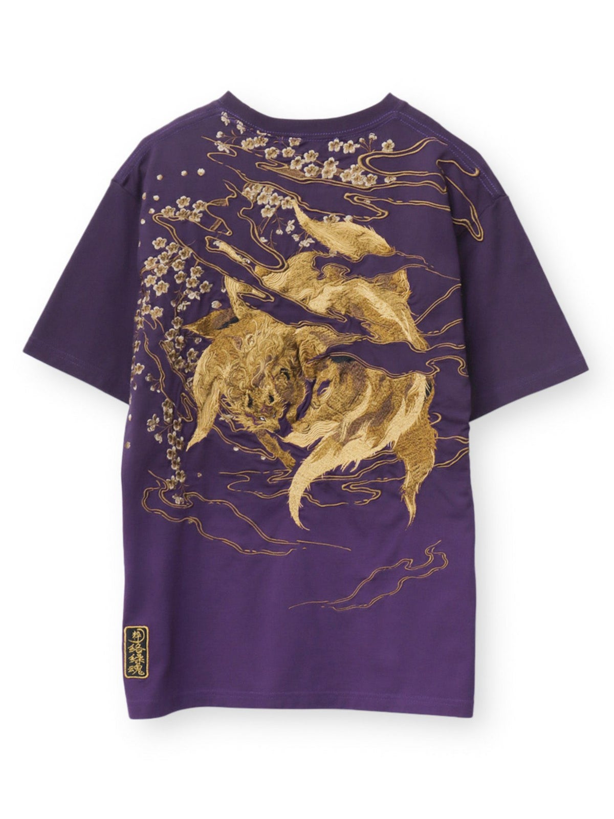 “枝垂れ桜と九尾の狐”総刺繍 段染めグラデーションTシャツ
