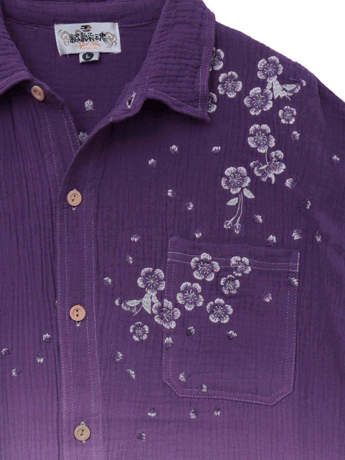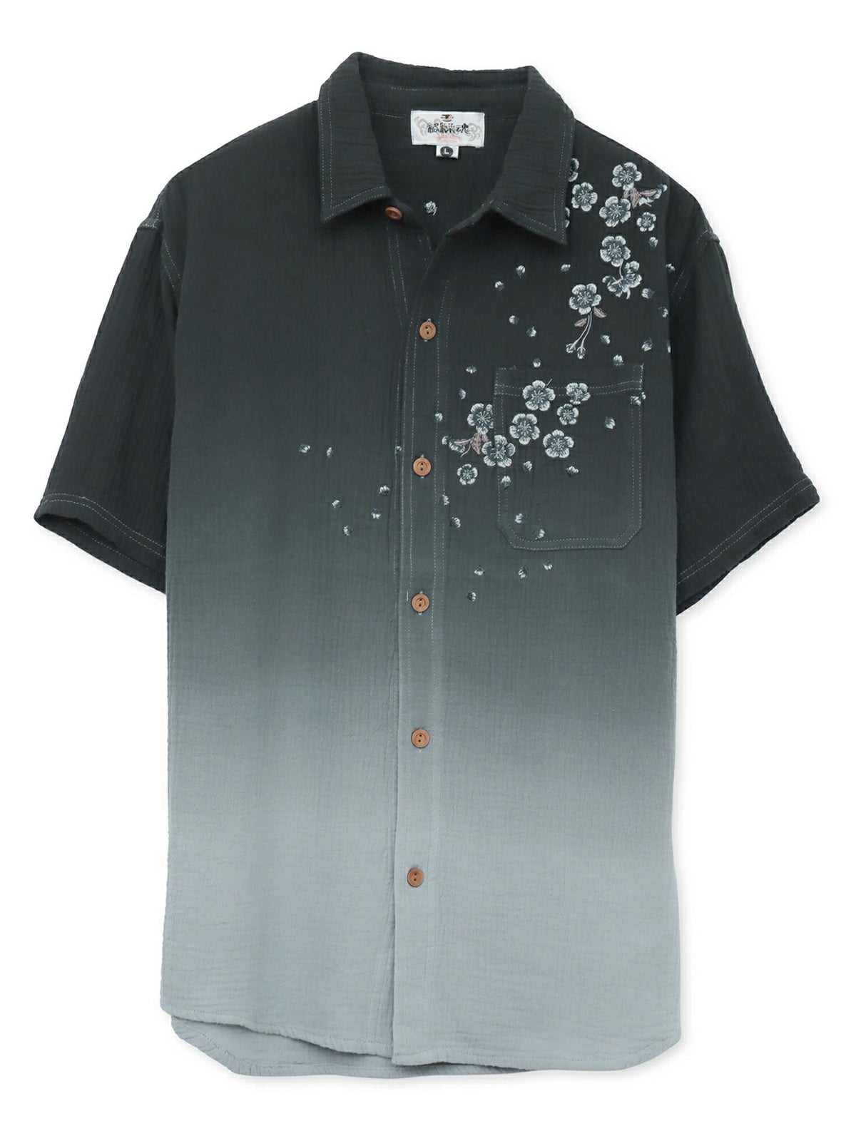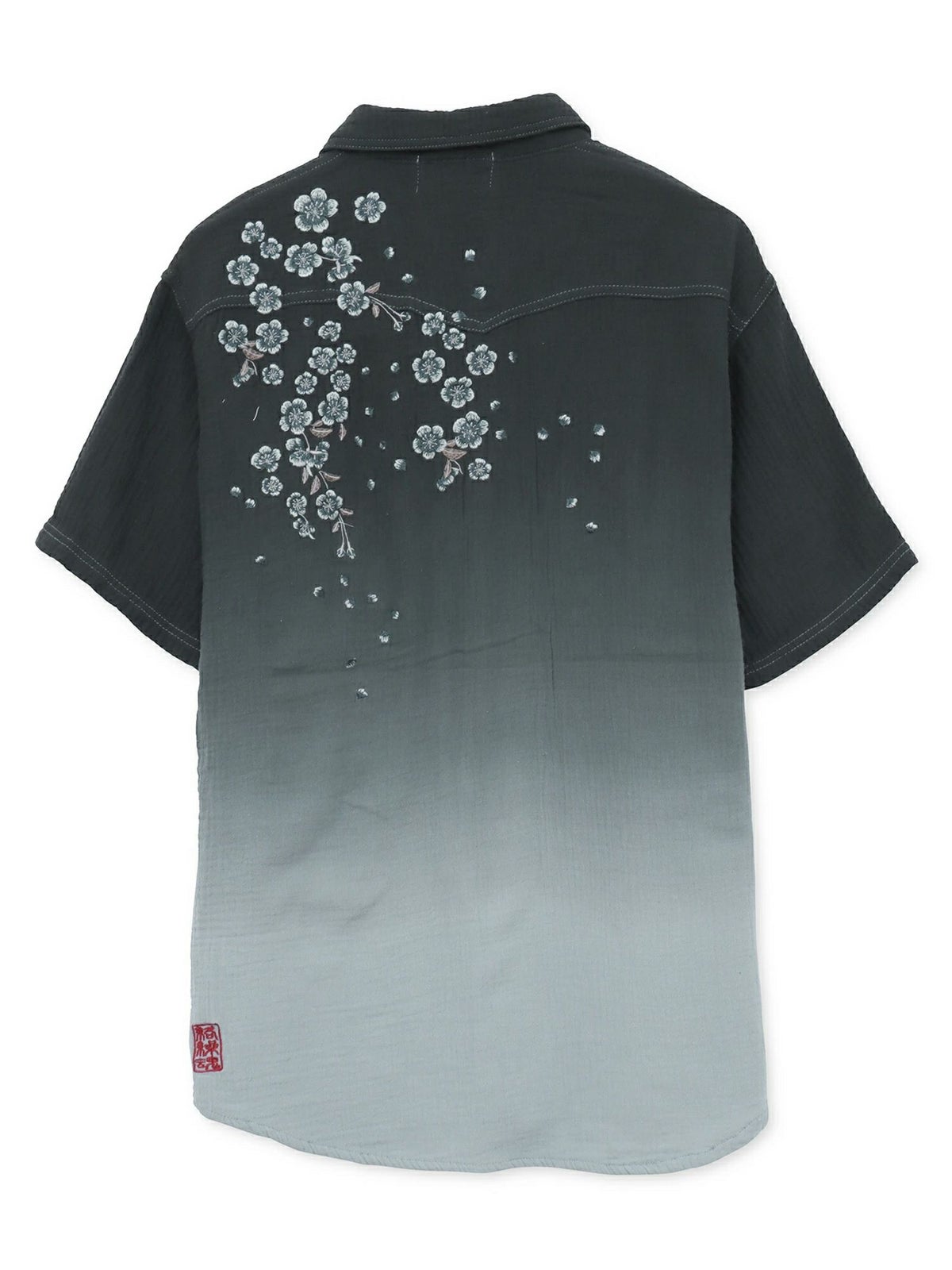 “夜桜”総刺繍ガーゼ素材 段染めグラデーション半袖シャツ
