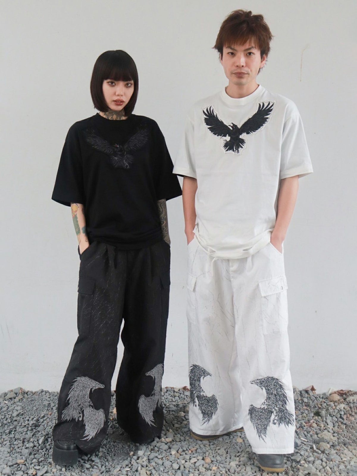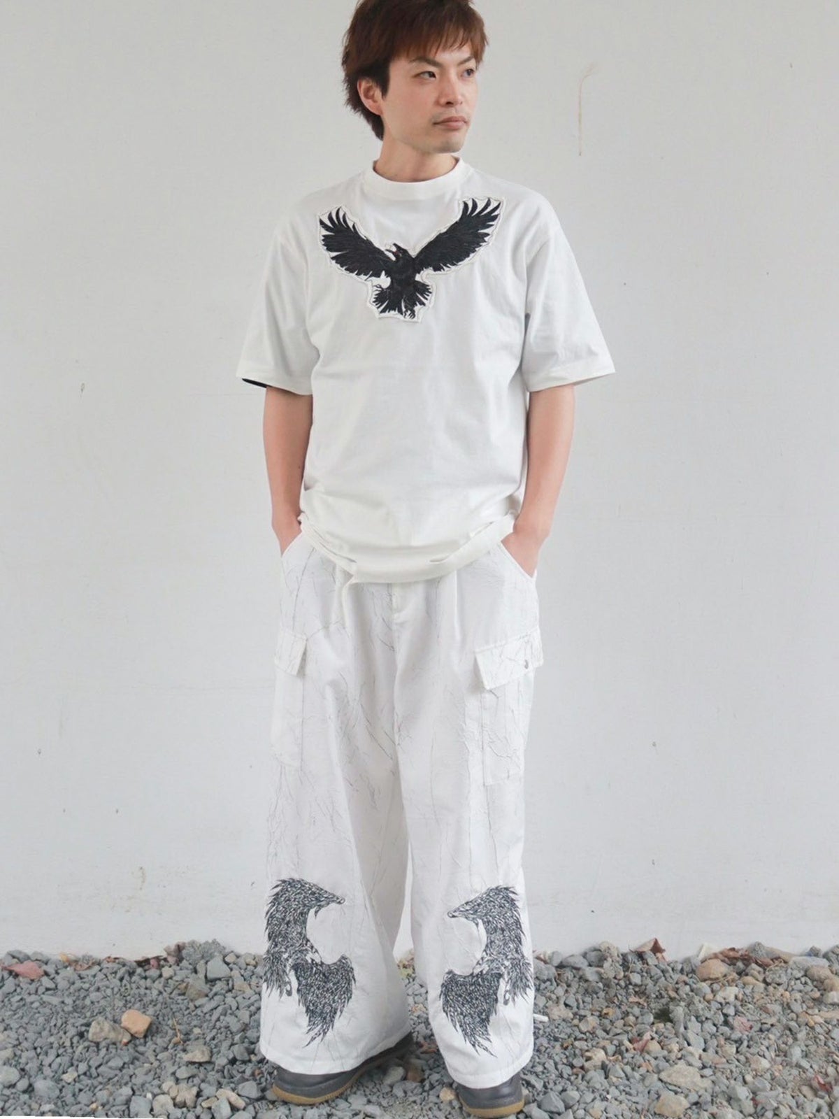 カラス刺繍 ダメージ加工Tシャツ≪返品・取寄対応不可≫