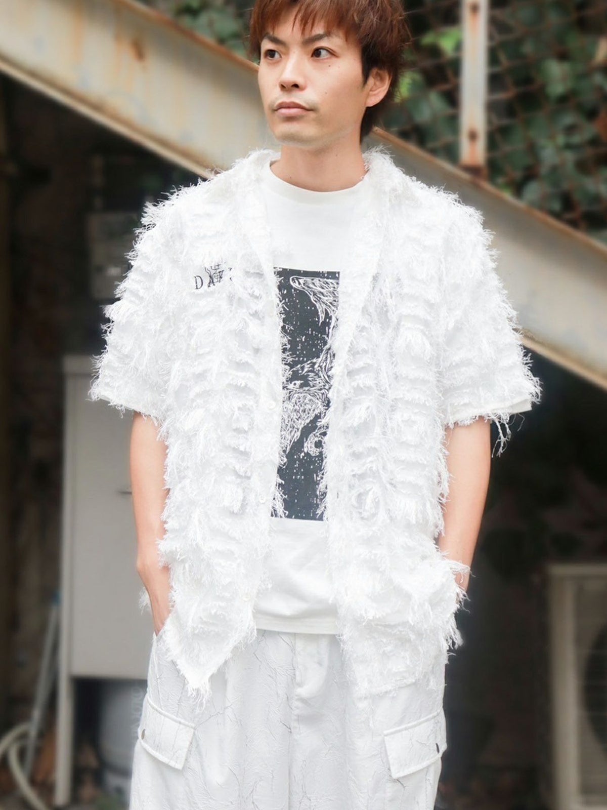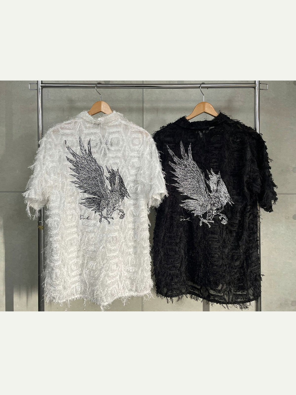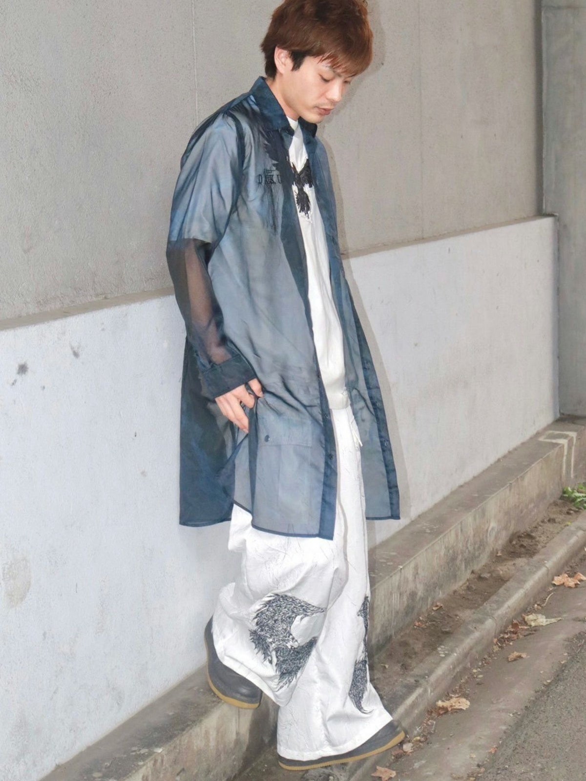 カラス刺繍シアー素材 半袖シャギーシャツ≪返品・取寄対応不可≫