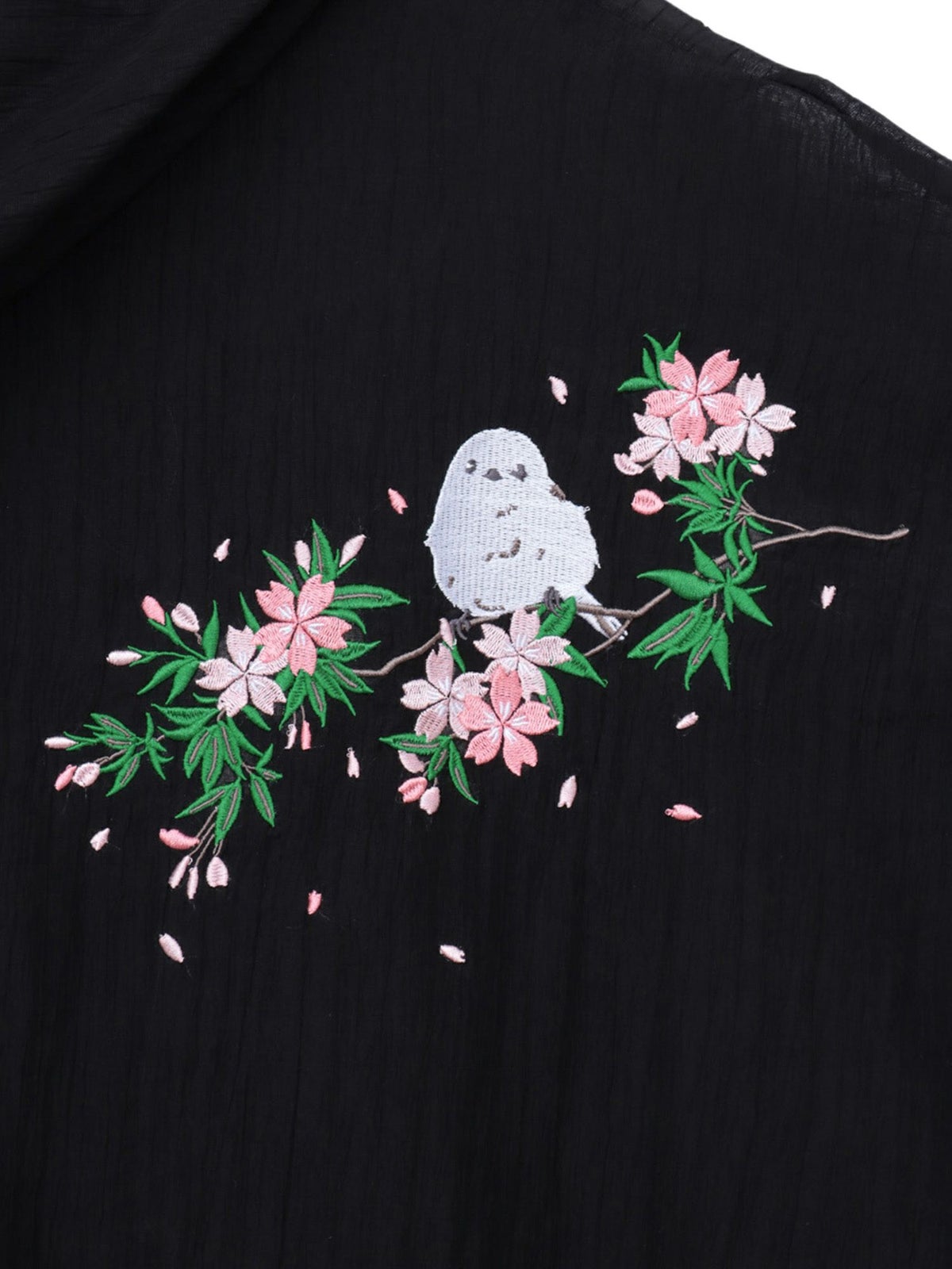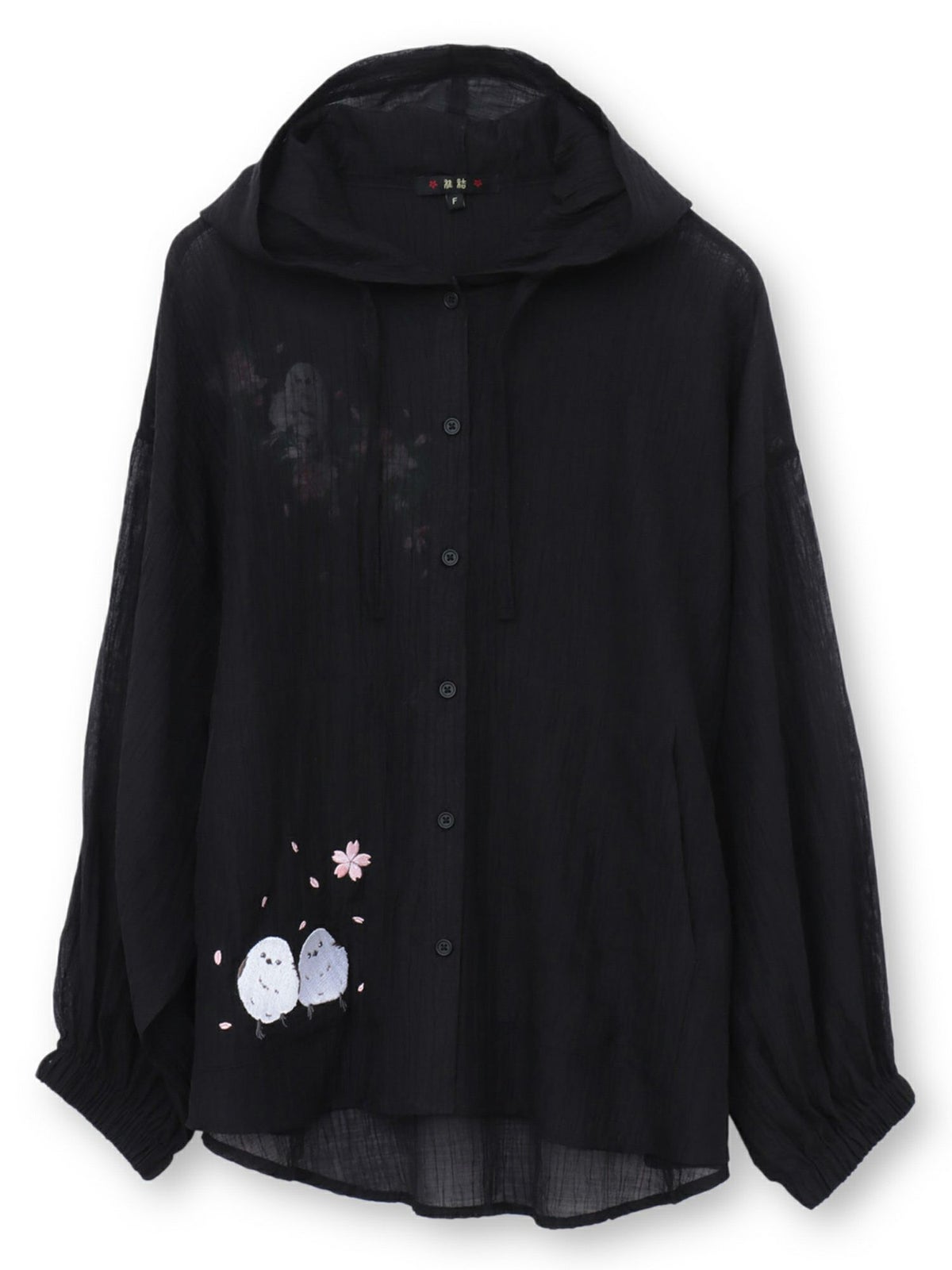 桜とシマエナガ刺繍 シアー素材ブラウスパーカー