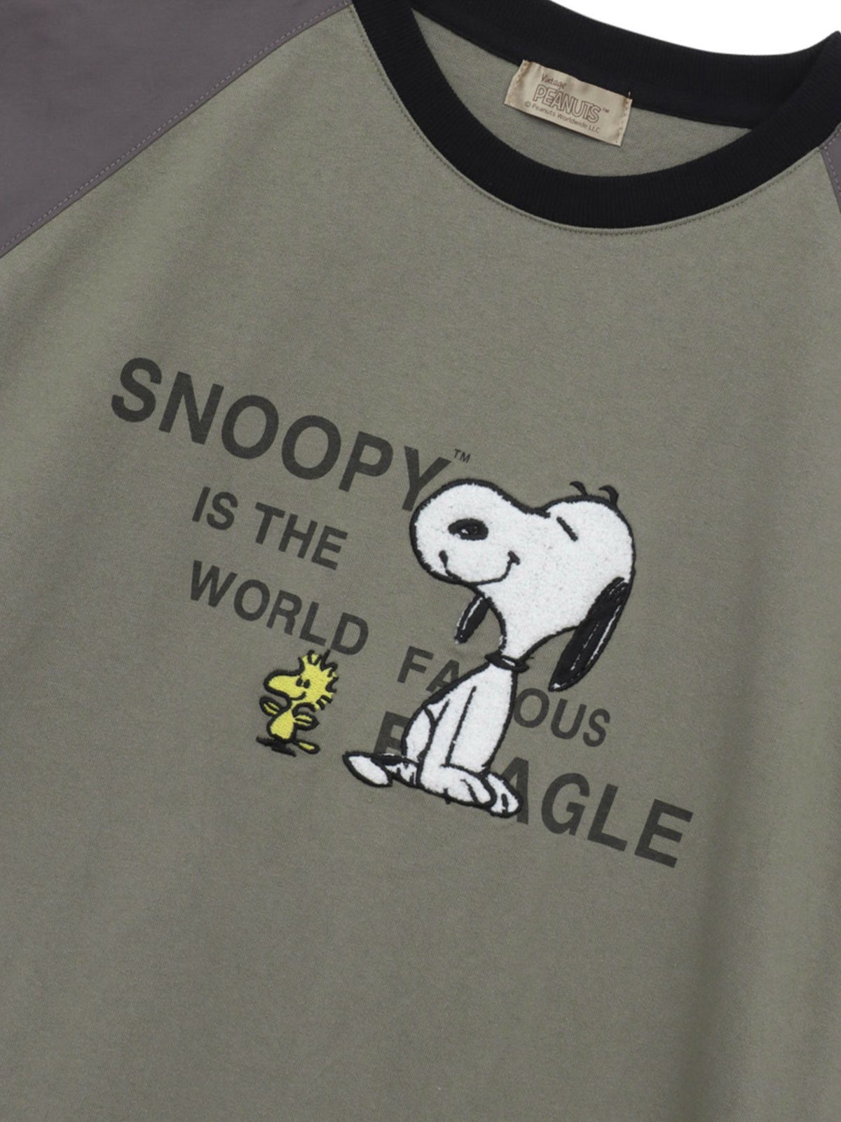 “VINTAGE SNOOPY”サガラ刺繍 袖切替Tシャツ〔別注〕≪返品・取寄対応不可≫