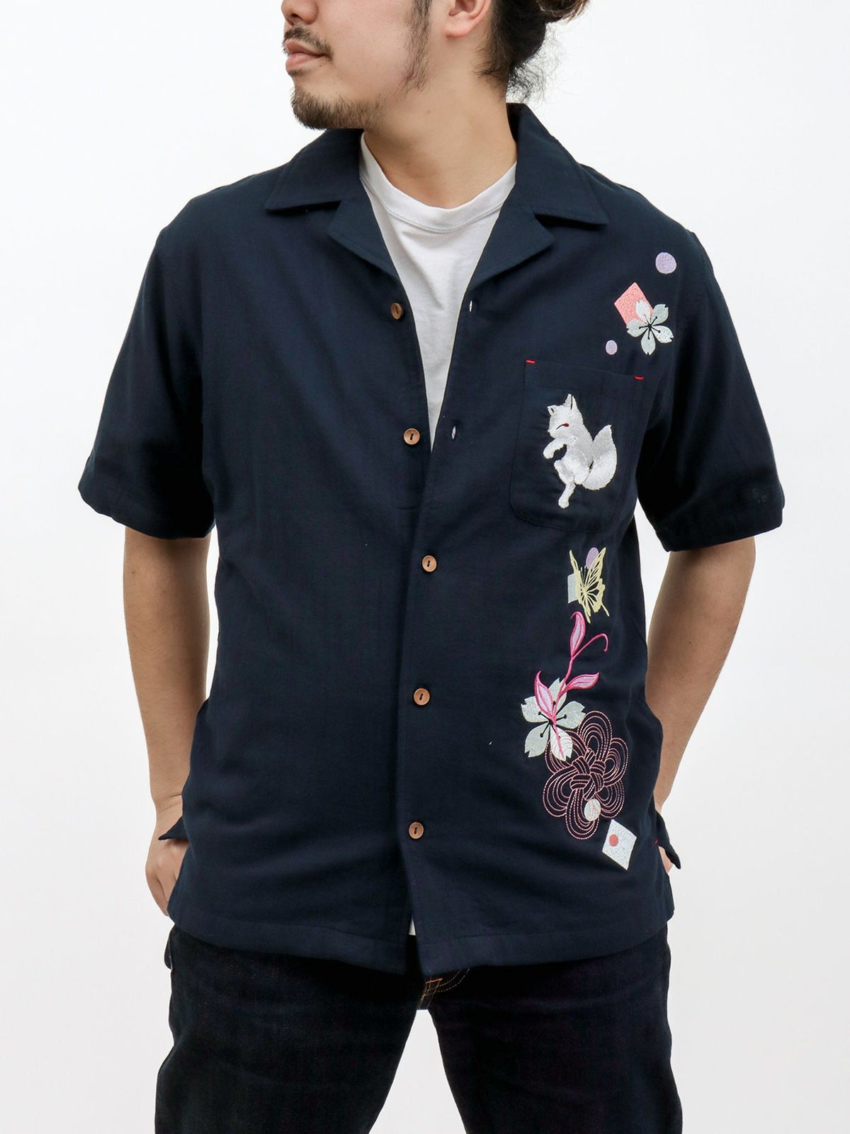 “桜花爛漫”総刺繍 半袖開襟シャツ