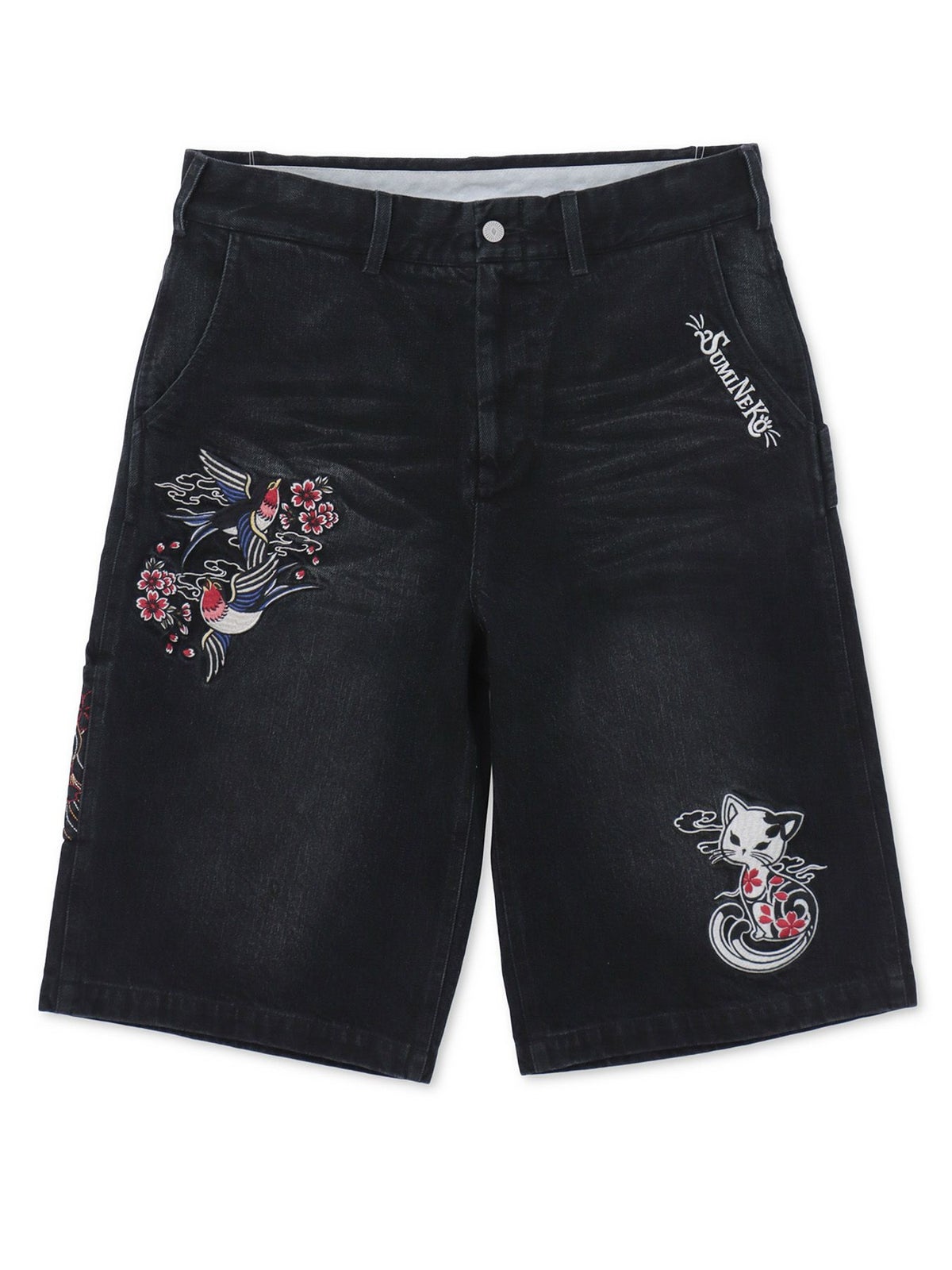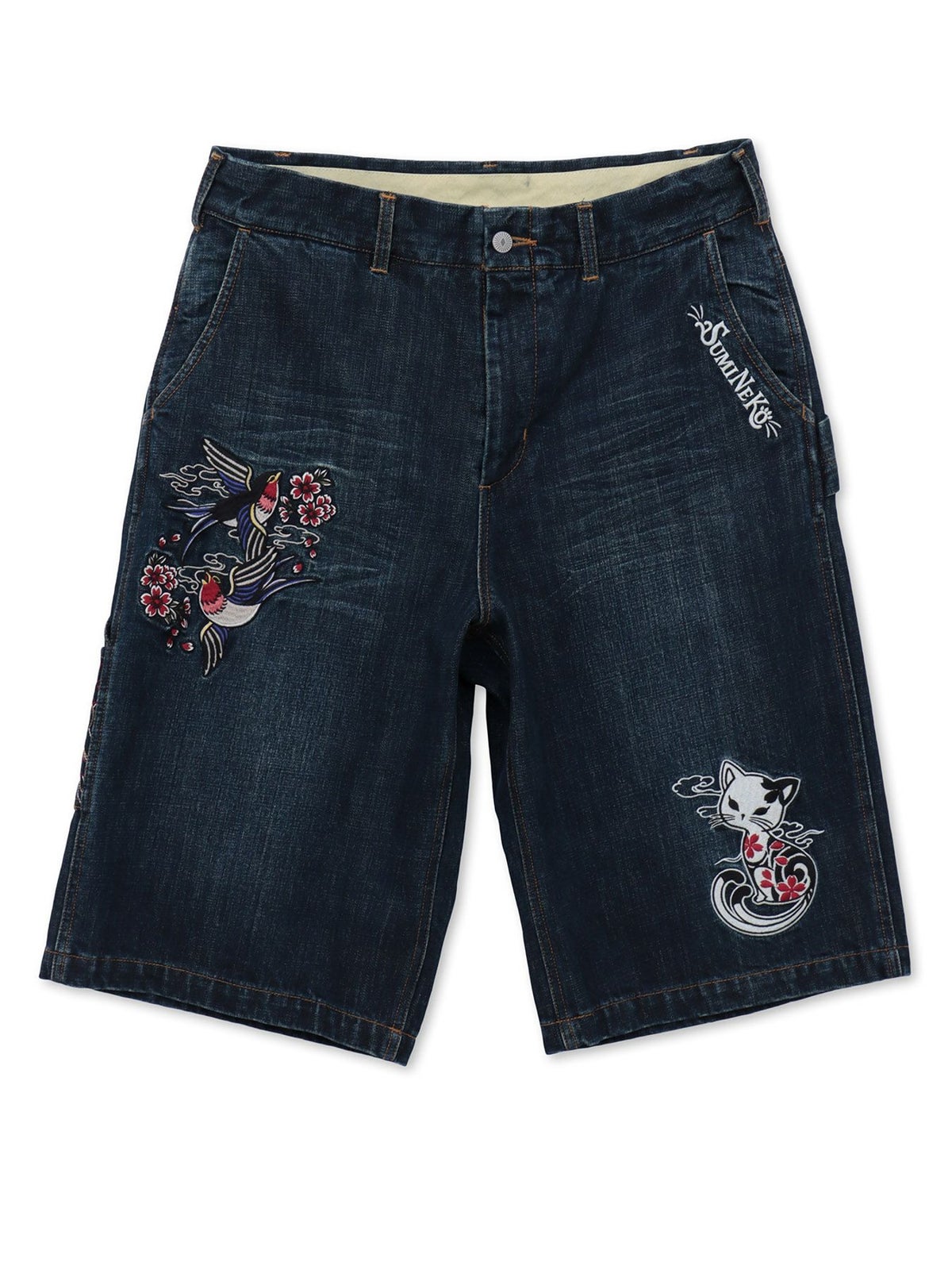 “ツバメと振り向き猫”総刺繍デニムショーツ≪返品・取寄対応不可≫