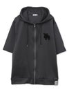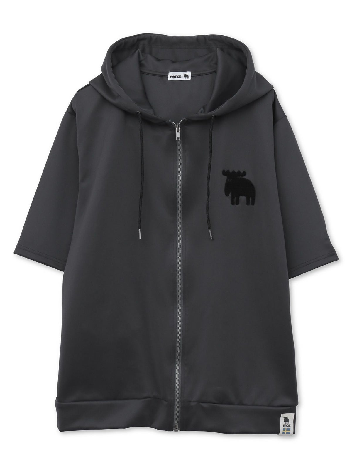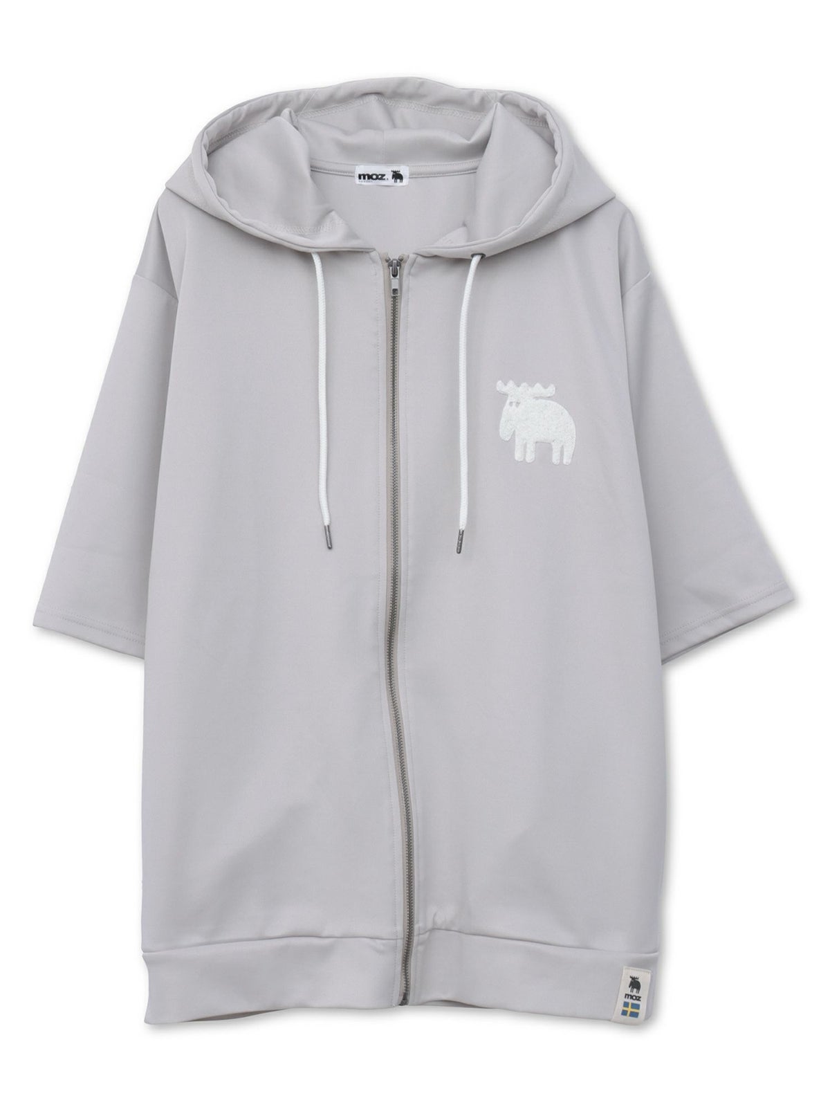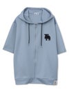 エルクサガラ刺繍入りジャージ素材 半袖ZIPパーカー〔別注〕≪返品・取寄対応不可≫