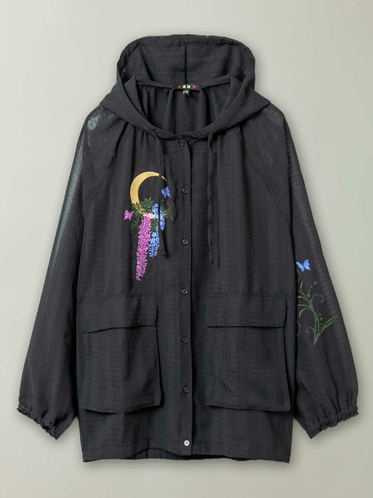 三日月と藤刺繍シアー素材ブラウスパーカー≪返品・取寄対応不可≫