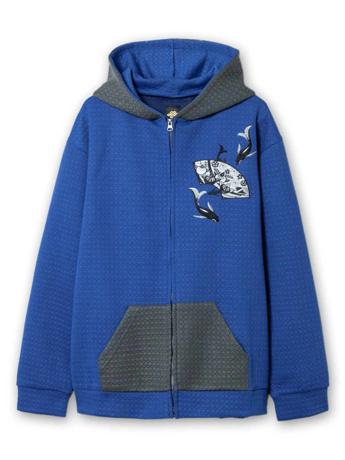 “扇と鯉”総刺繍六角ジャガード素材切り替えZIPパーカー≪返品・取寄対応不可≫