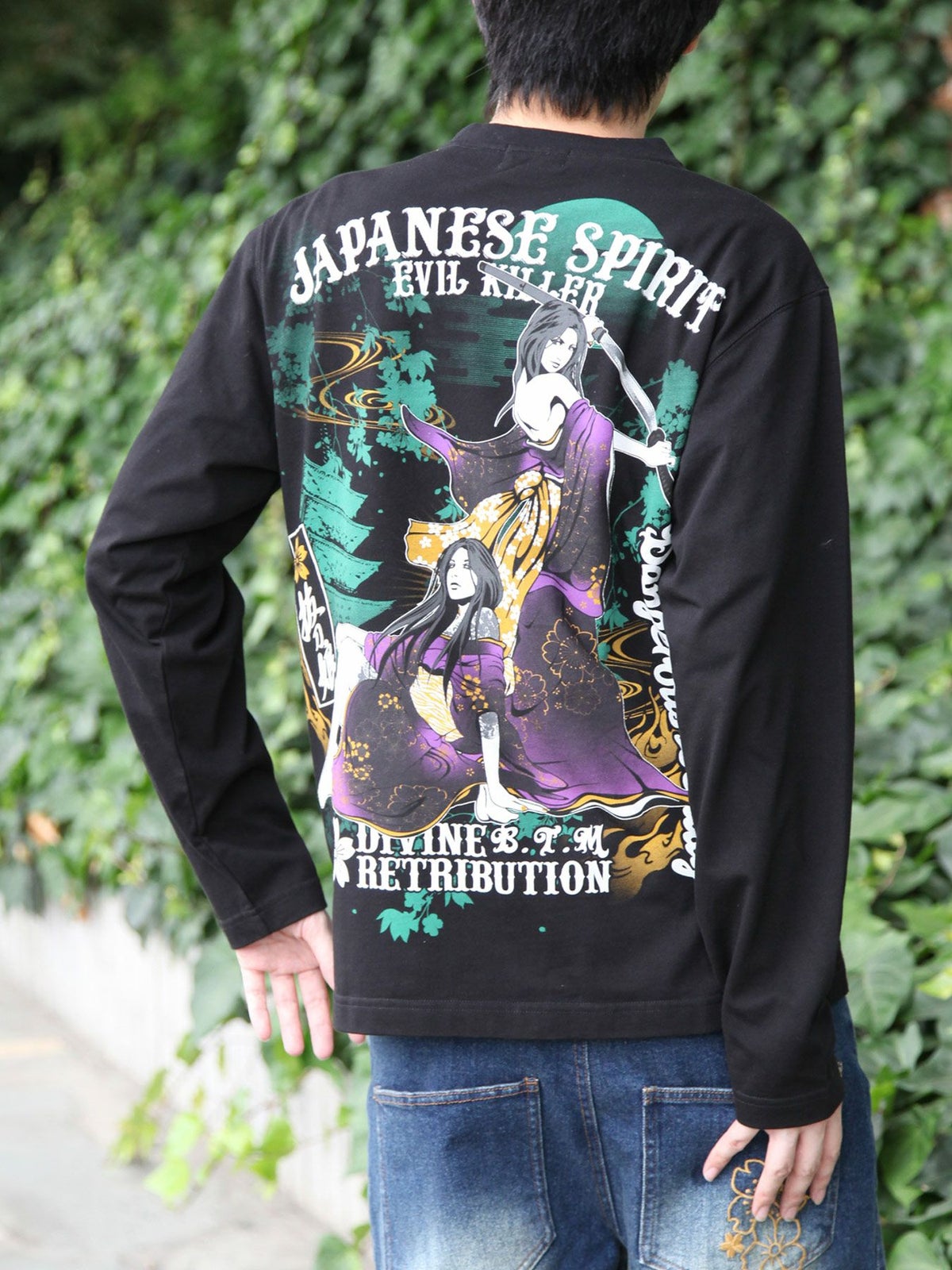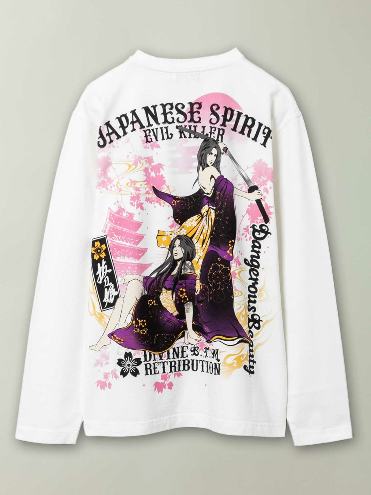 “月と鶴”刺繍入りプリントロンT≪返品・取寄対応不可≫