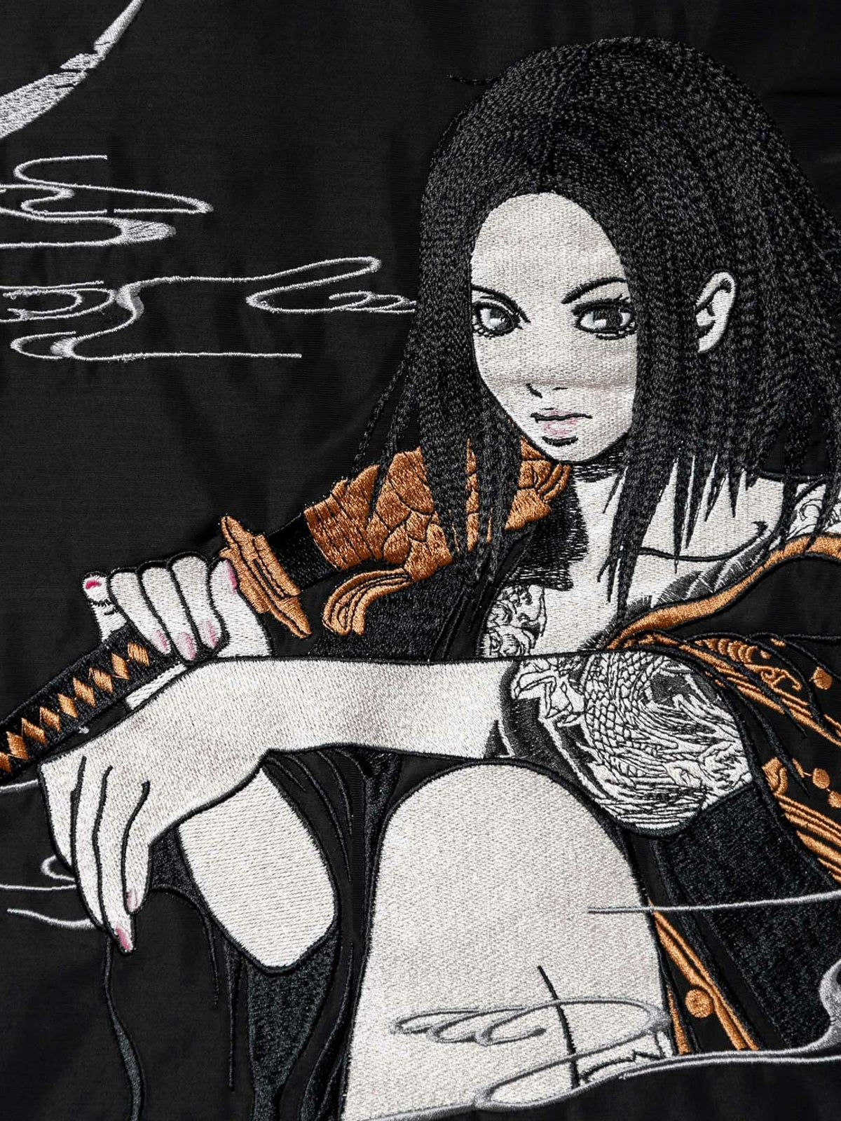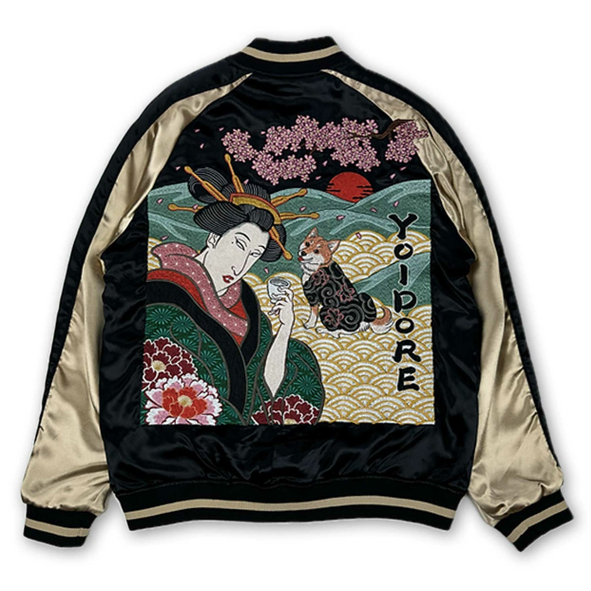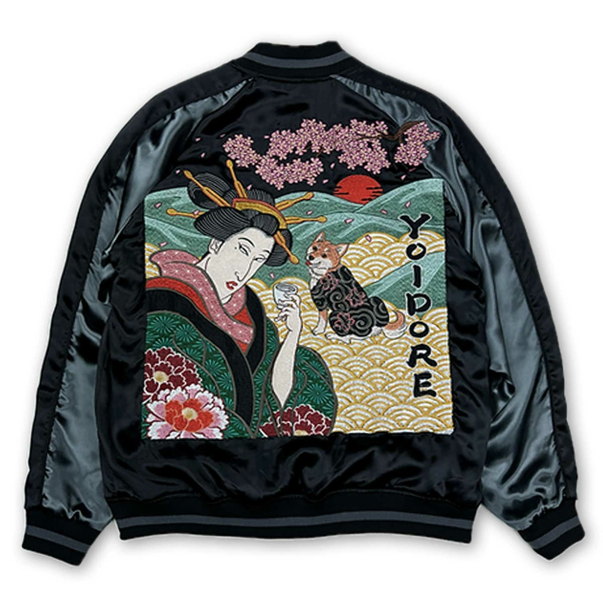 “浮世絵:舞妓と犬”総刺繍リバーシブルスカジャン≪返品・取寄対応不可≫
