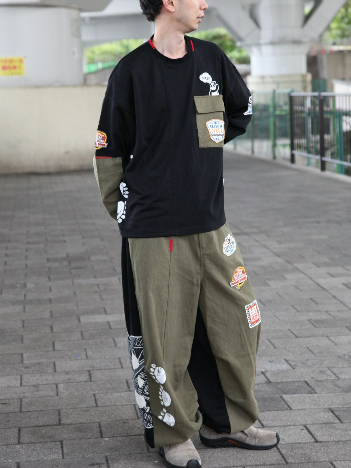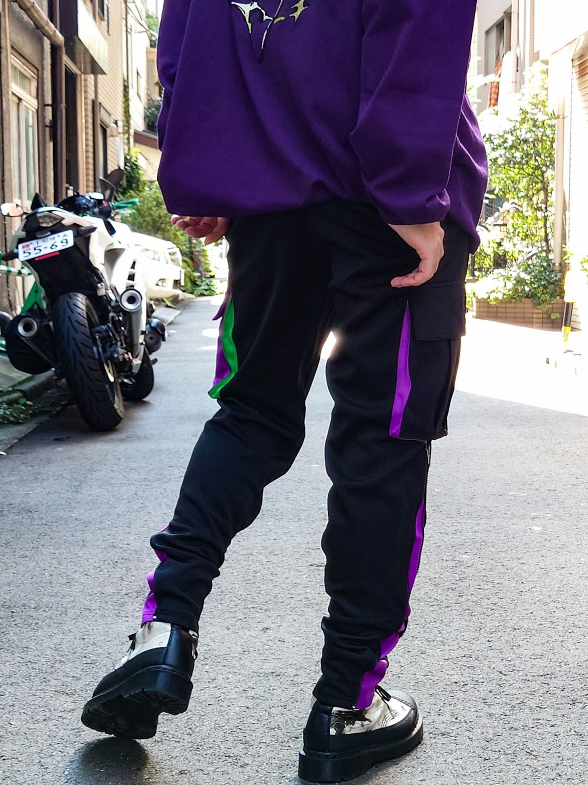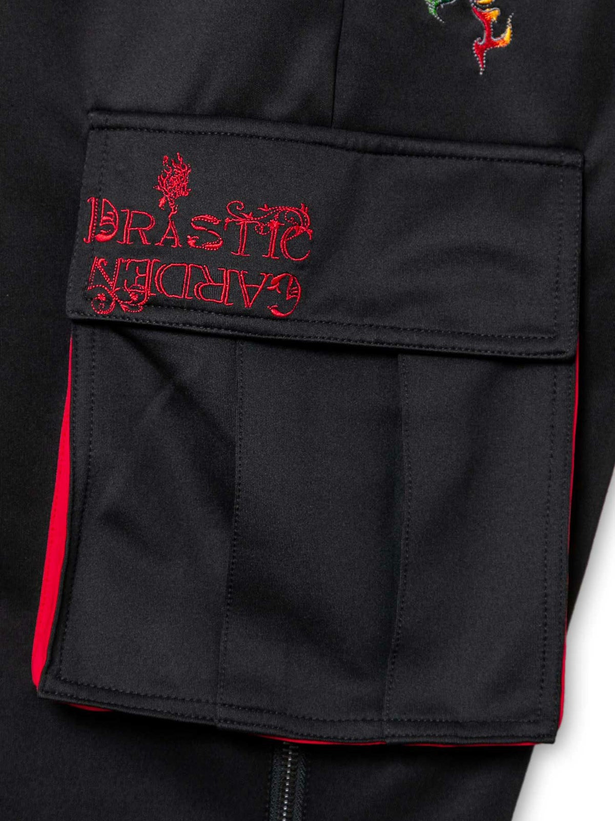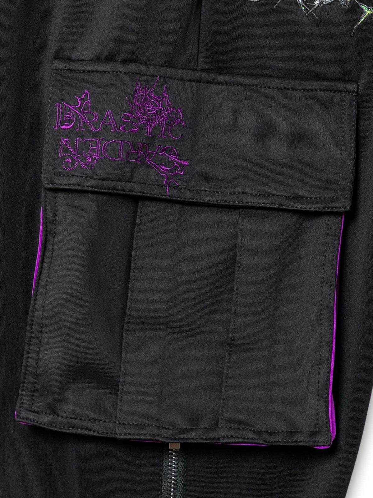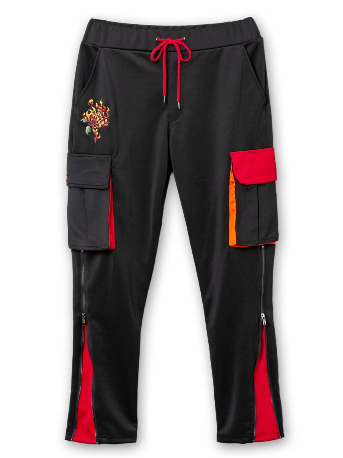 “火炎の菊/稲妻の薔薇”配色切替ジャージ素材サイドZIPカーゴパンツ≪返品・取寄対応不可≫