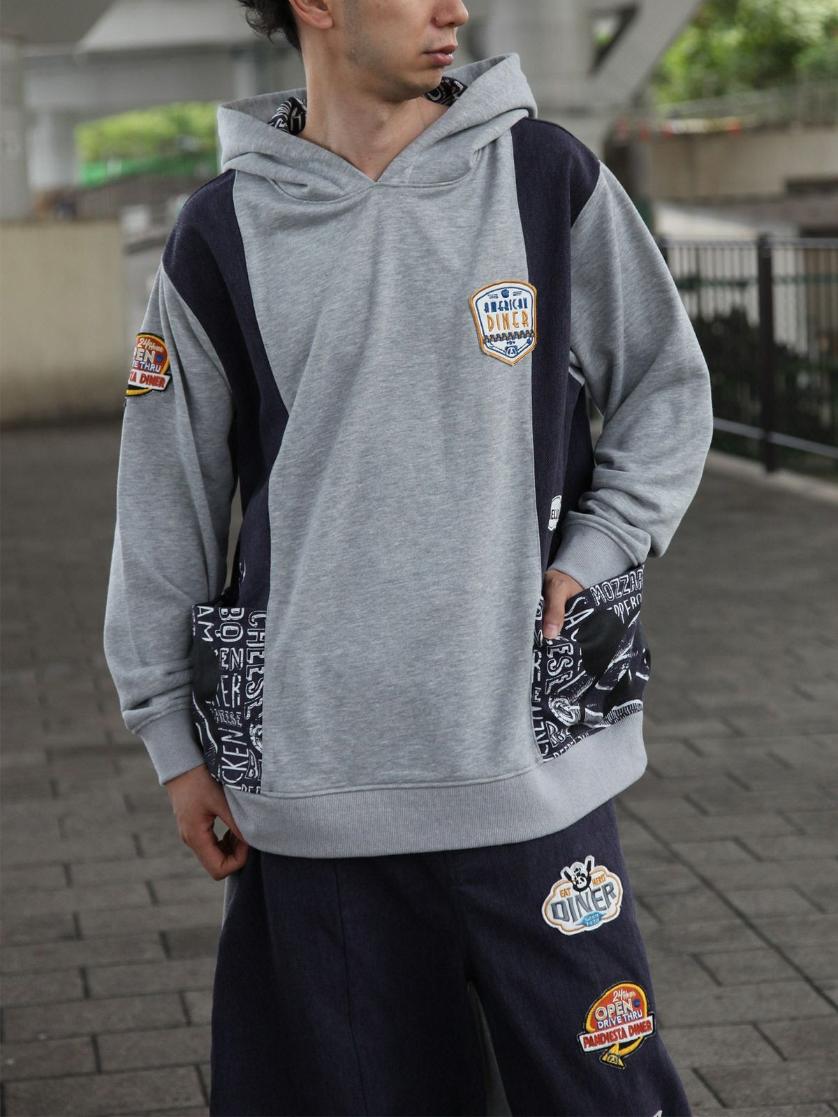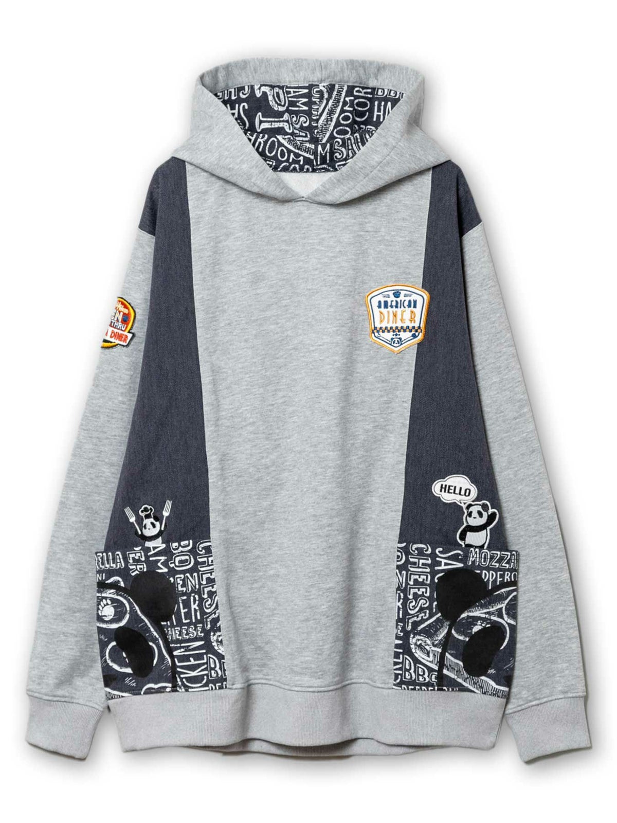“アメリカンダイナー”刺繍入りBIGシルエットプルパーカー