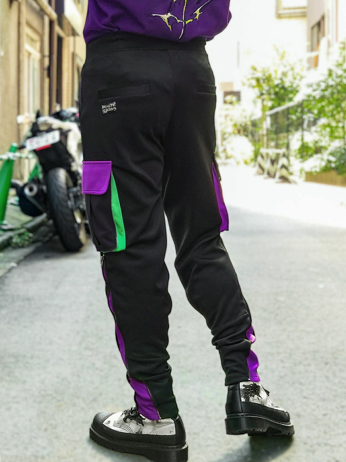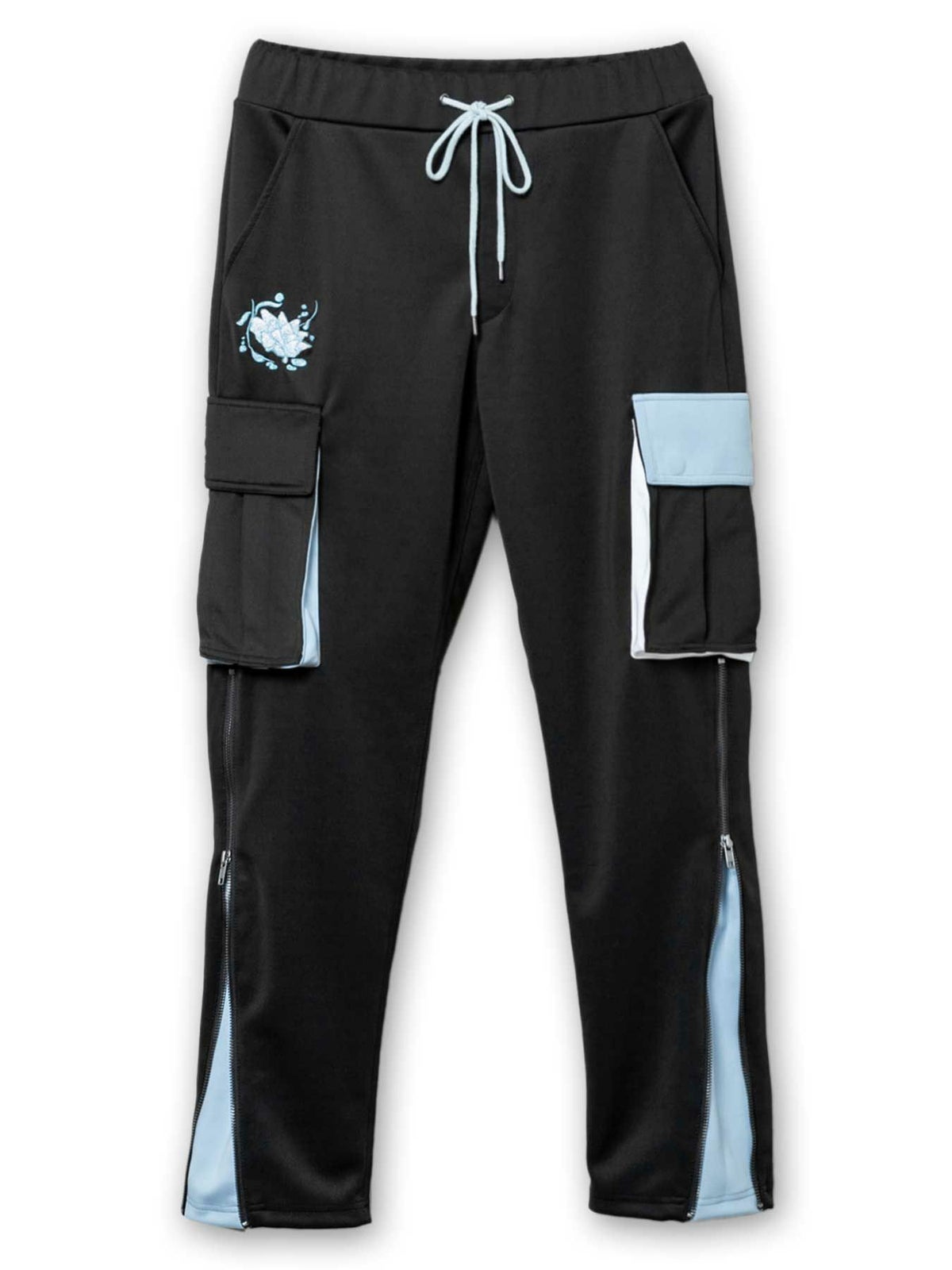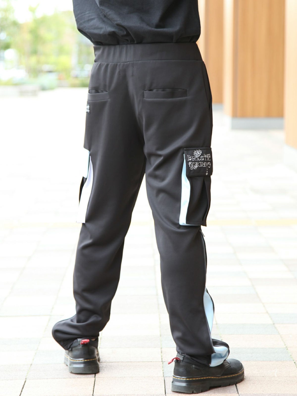 “水の蓮”配色切替ジャージ素材サイドZIPカーゴパンツ≪返品・取寄対応不可≫