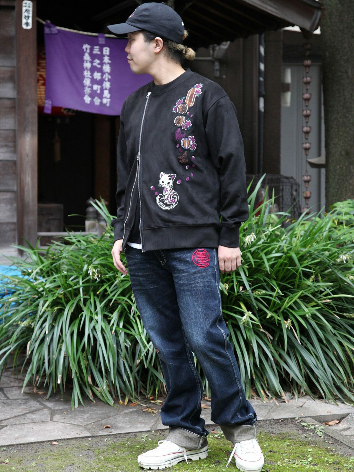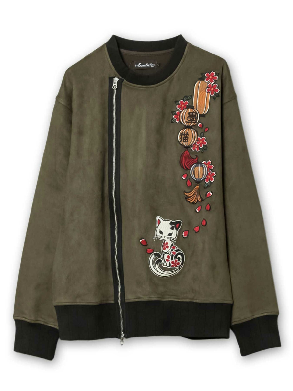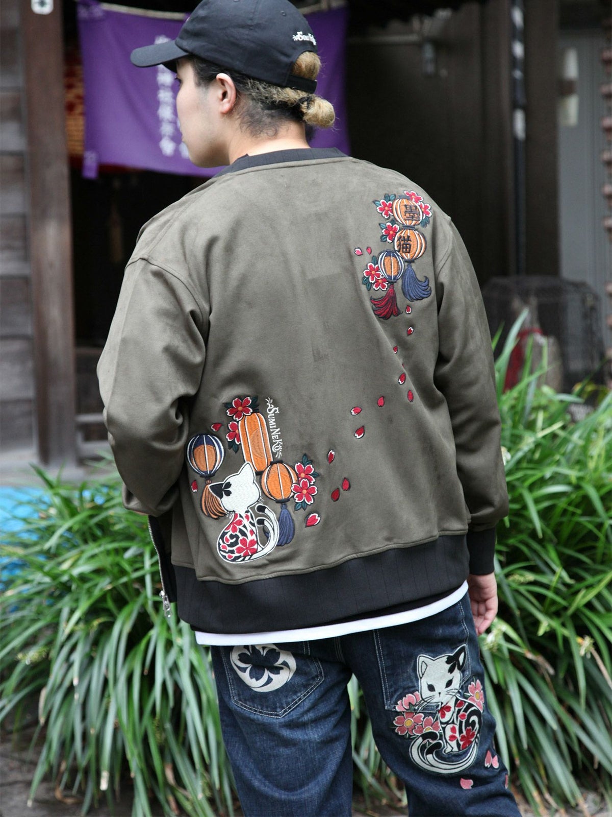 “提灯とスミネコ”総刺繍フェイクスウェードZIPジャケット≪返品・取寄対応不可≫