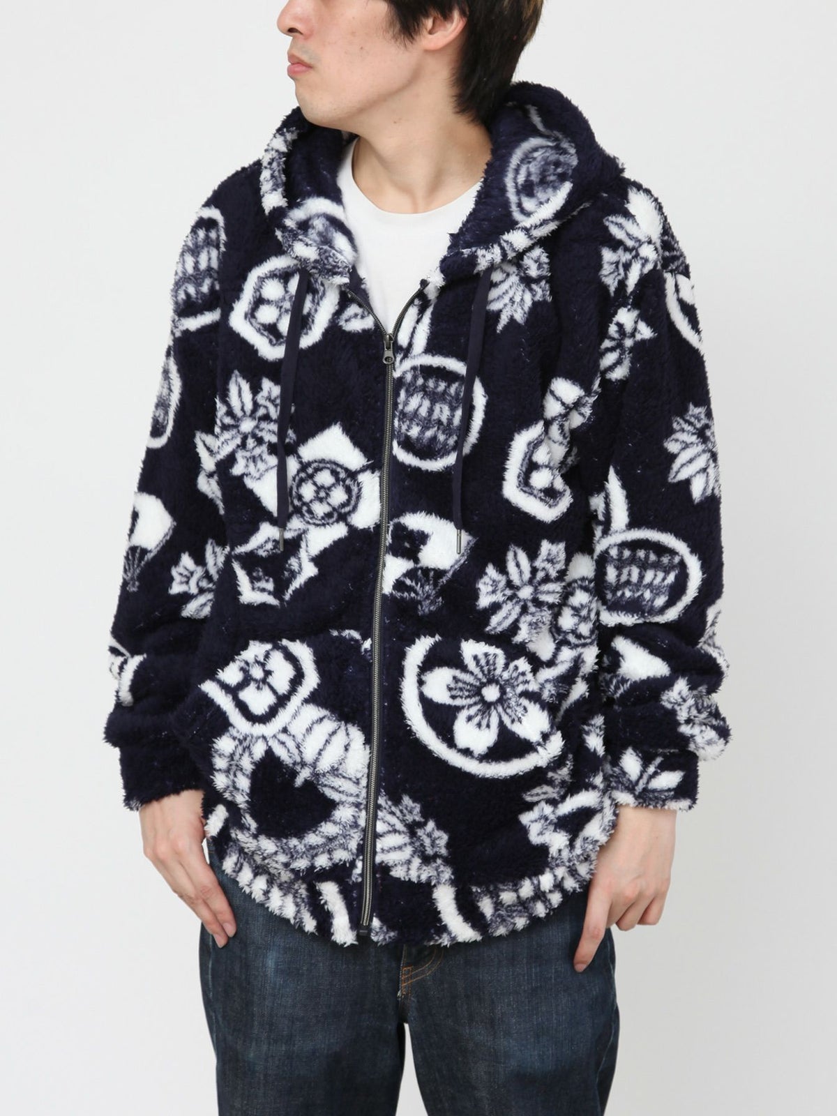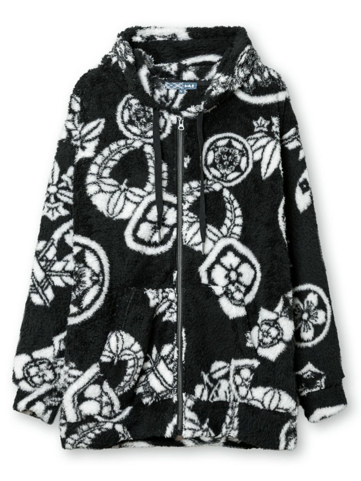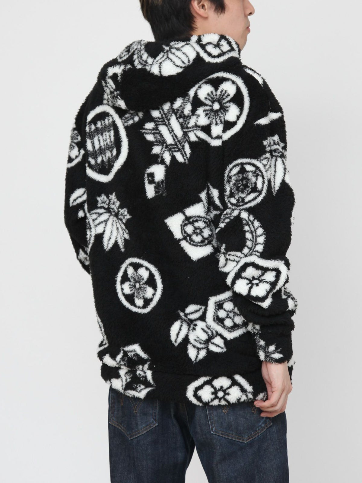 家紋総柄ボアフリースZIPパーカー≪返品・取寄対応不可≫