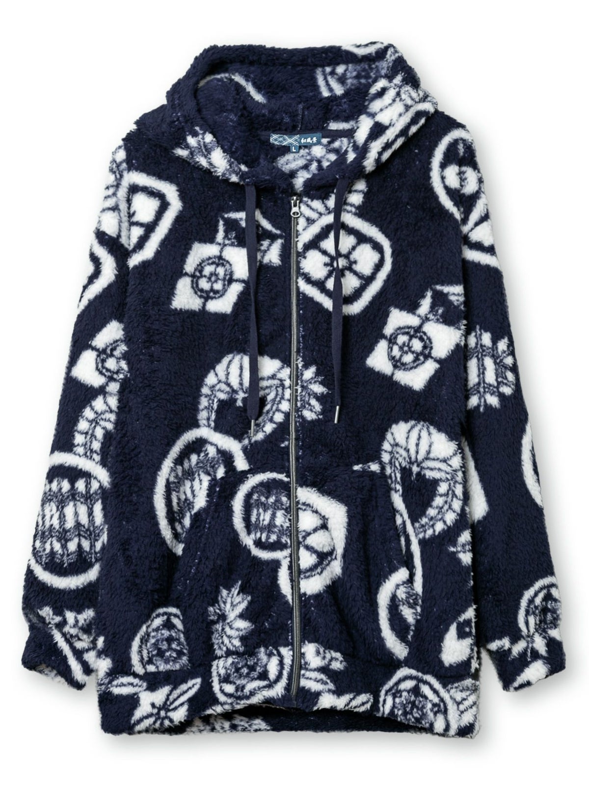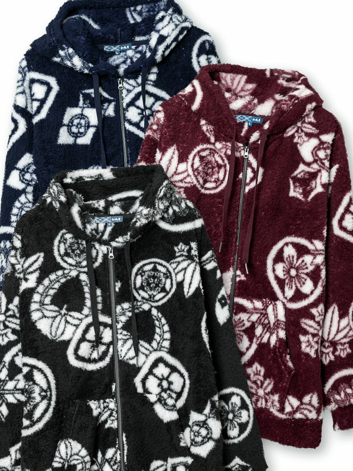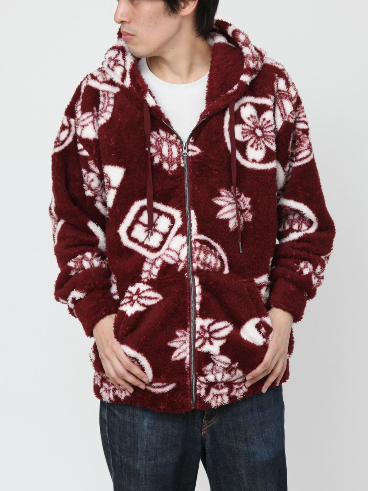 家紋総柄ボアフリースZIPパーカー≪返品・取寄対応不可≫