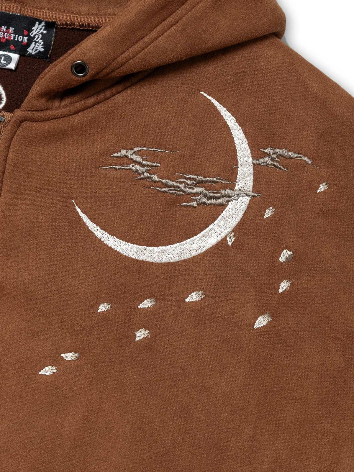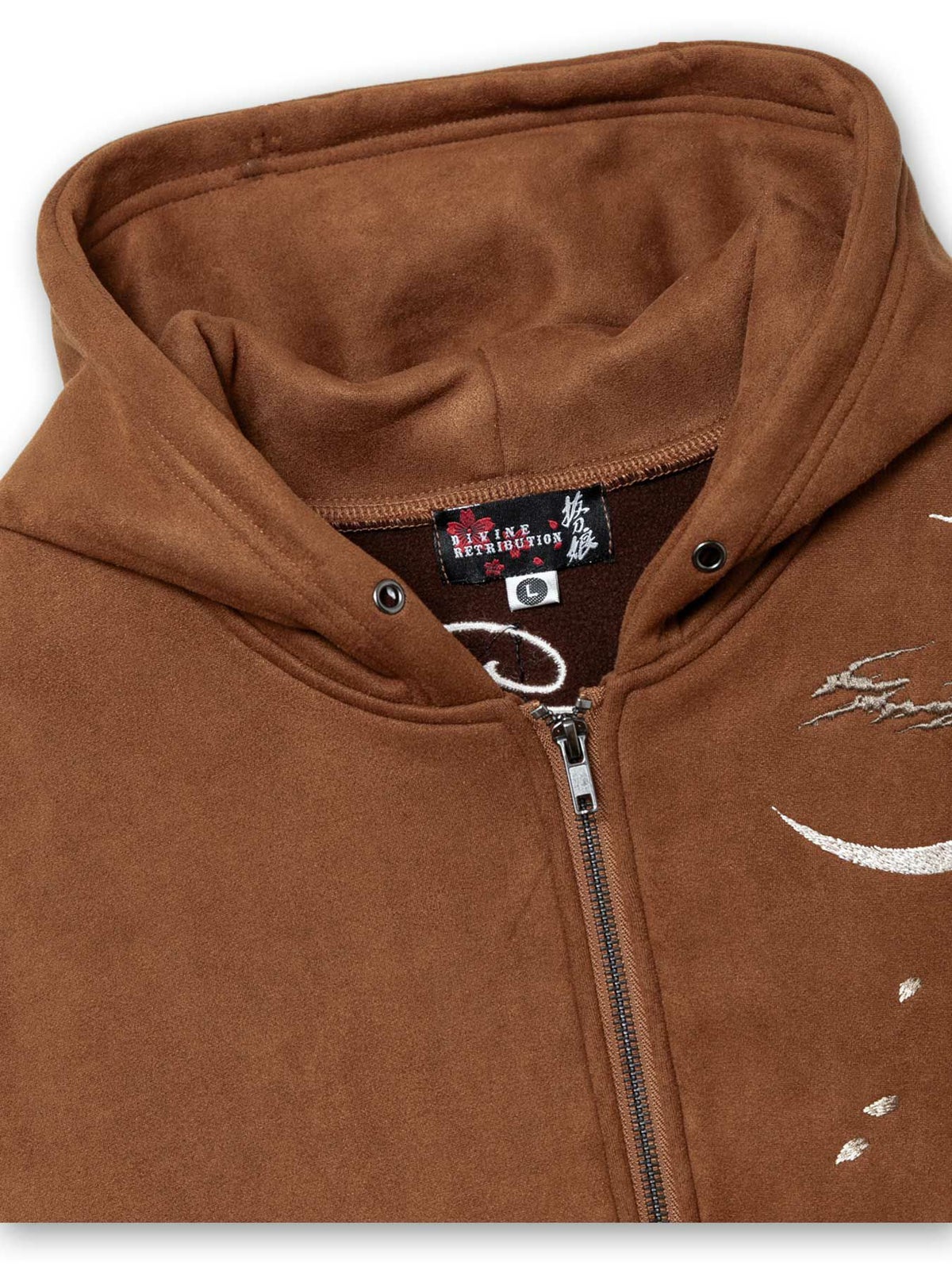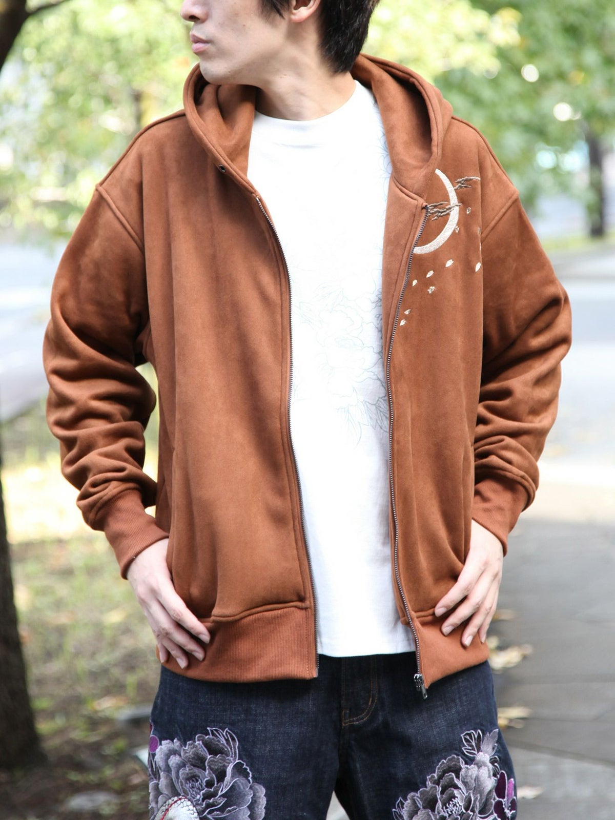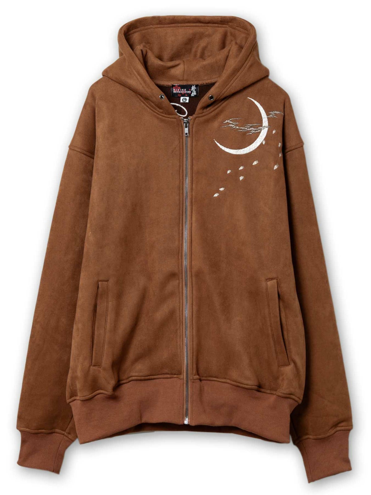 “闇の刺客:凛”総刺繍フェイクスウェードZIPパーカー